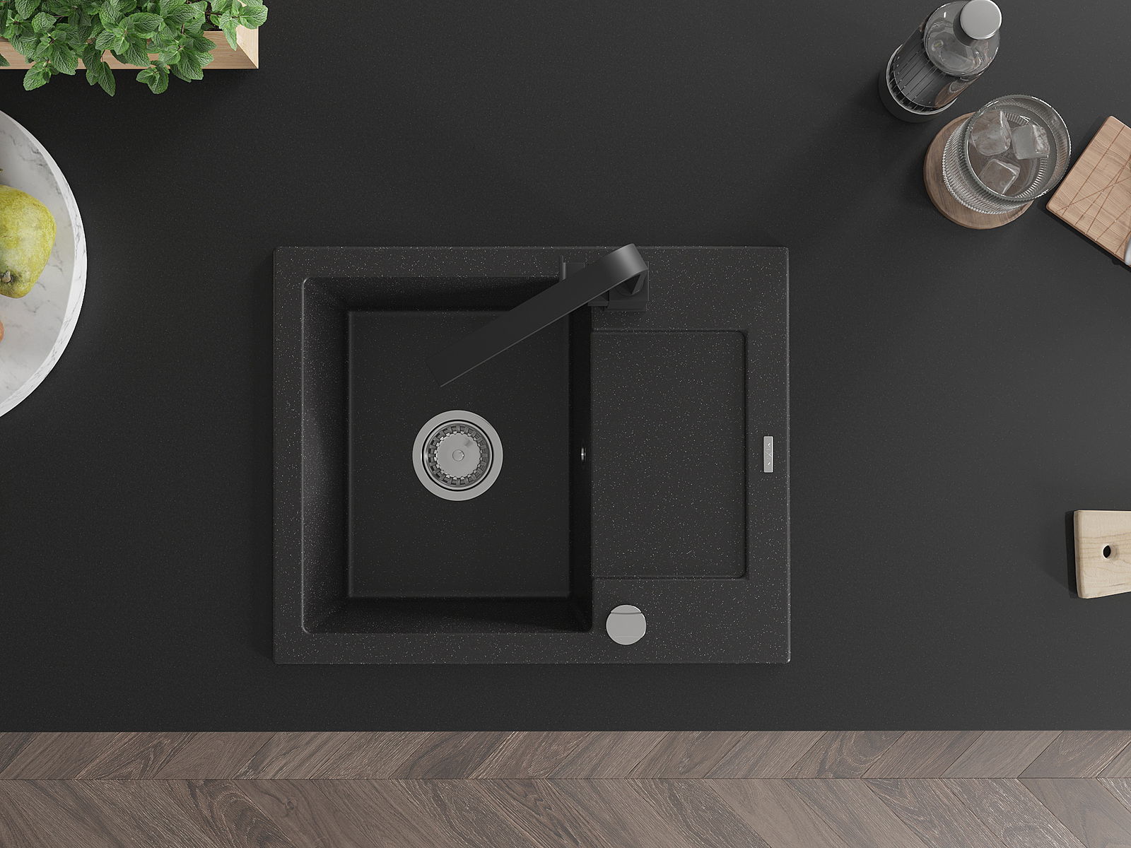 Dřez byl vyroben z vysoce kvalitního granitu. Představuje elegantní a především praktický doplněk každé kuchyně, bez ohledu na její styl. Vysoká kvalita a trvanlivost granitu zajišťují dlouholeté používání.