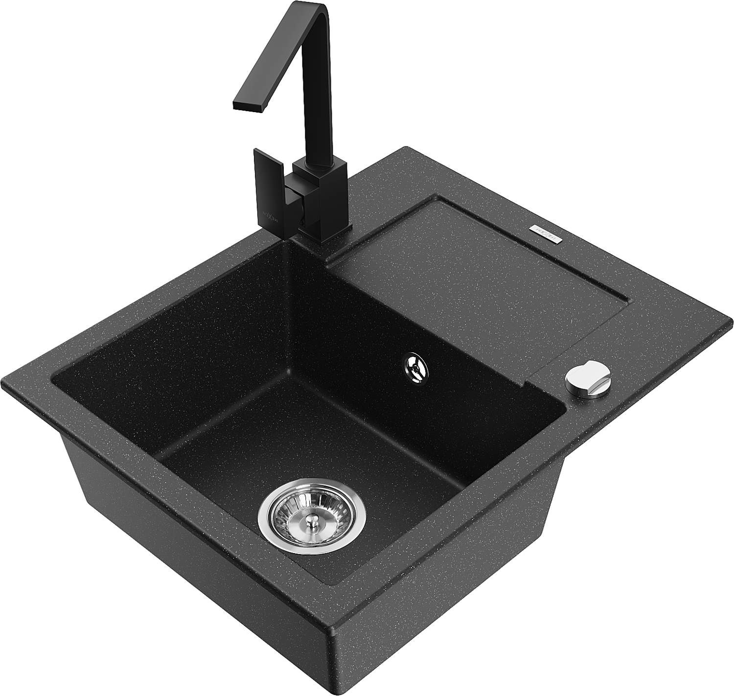 Mexen Enzo granitový dřez 1-komorový s odkapávačem a kuchyňská baterie Rita, černý/stříbrný metalik - 6506-73-670300-70