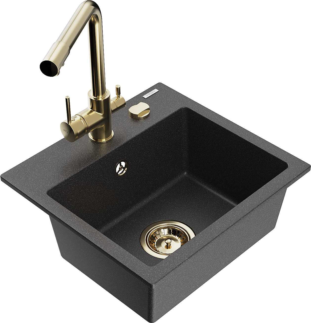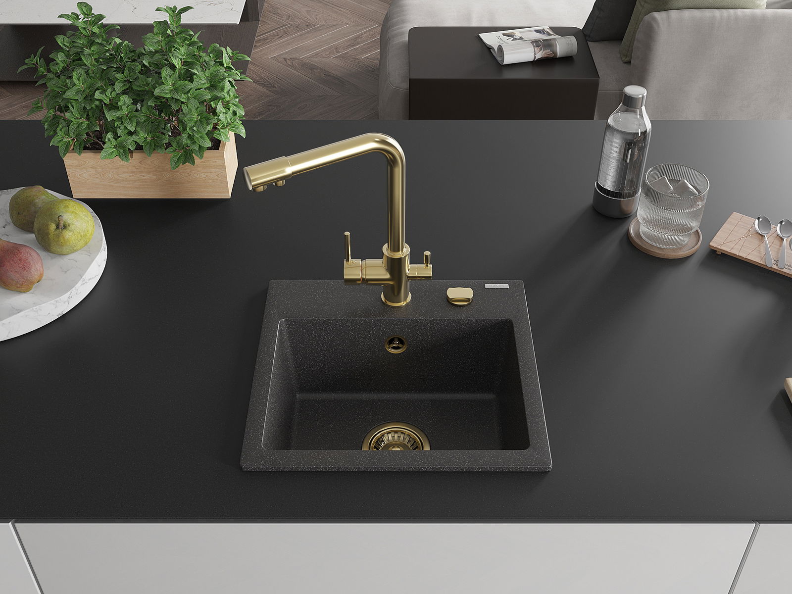 Mexen Milo granitový dřez 1-komorový s kuchyňskou baterií Duero, černý nakrapený - 6505-76-671600-50