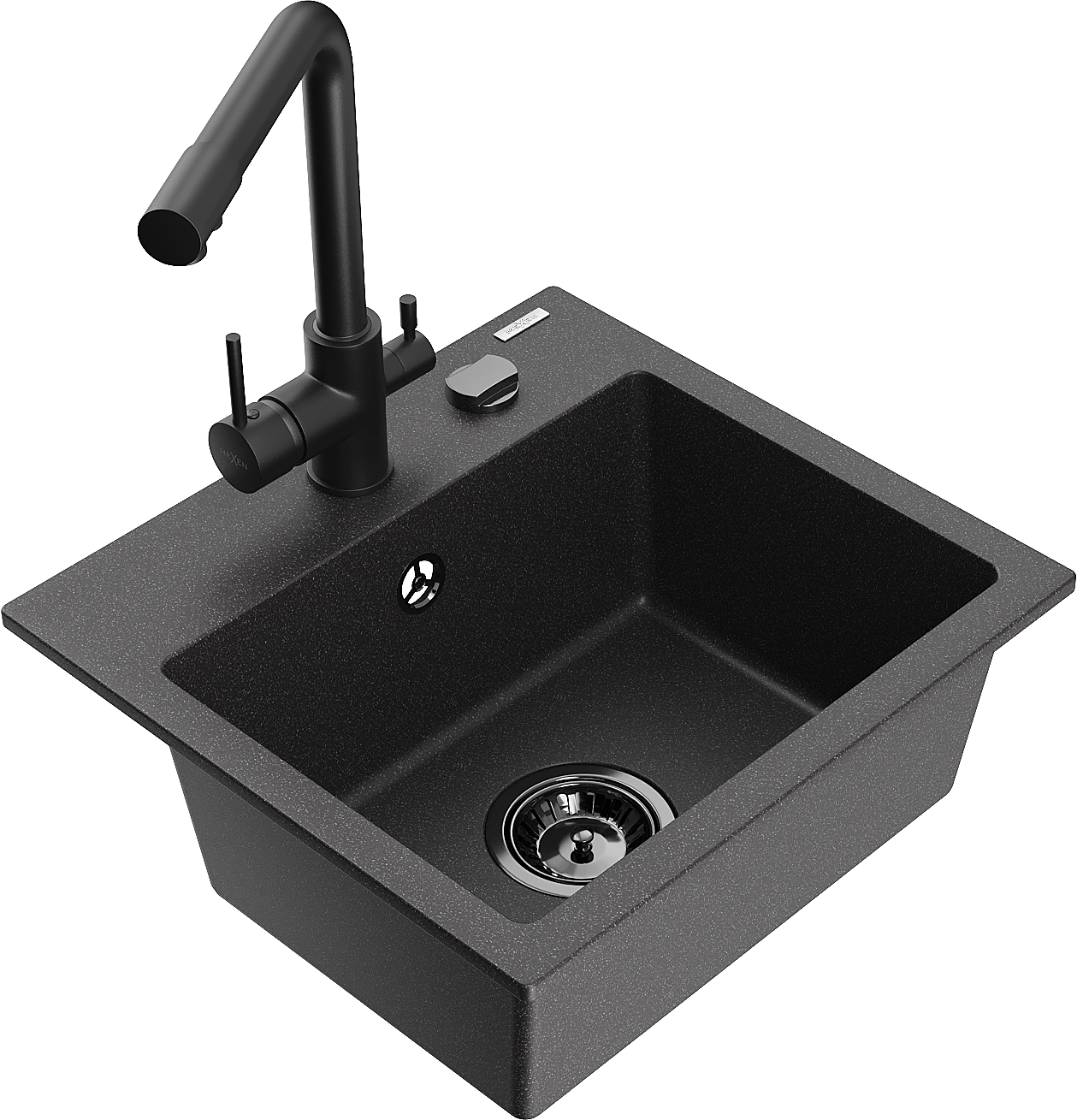 Mexen Milo granitový dřez 1-komorový s kuchyňskou baterií Duero, černý kropenatý - 6505-76-671600-70-B