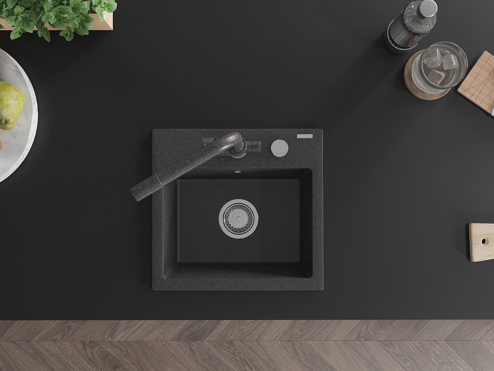 Dřez má předfrézovaný otvor o průměru 35 mm k samostatnému proražení. Může být použit například k montáži dávkovače na tekutinu, který eliminuje přítomnost plastových lahví v kuchyni a dodá jí elegantní finiš.