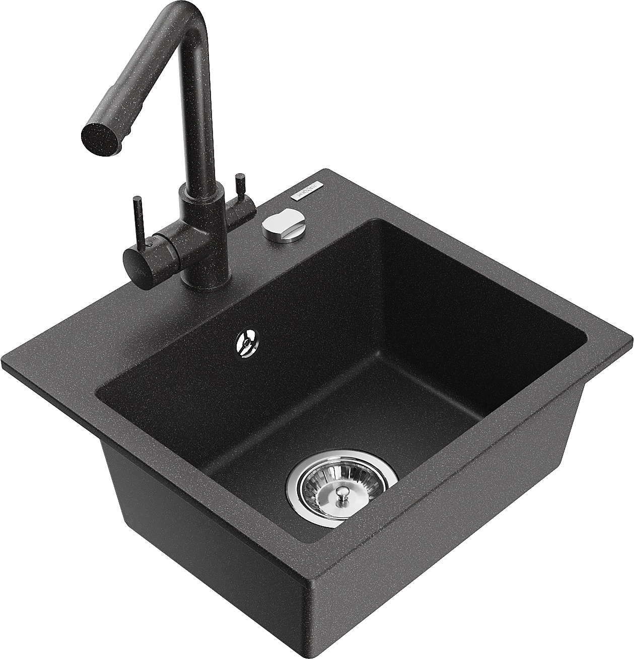 Mexen Milo granitový kuchyňský dřez 1-komorový s kuchyňskou baterií Duero, černý kropenatý - 6505-76-671600-76