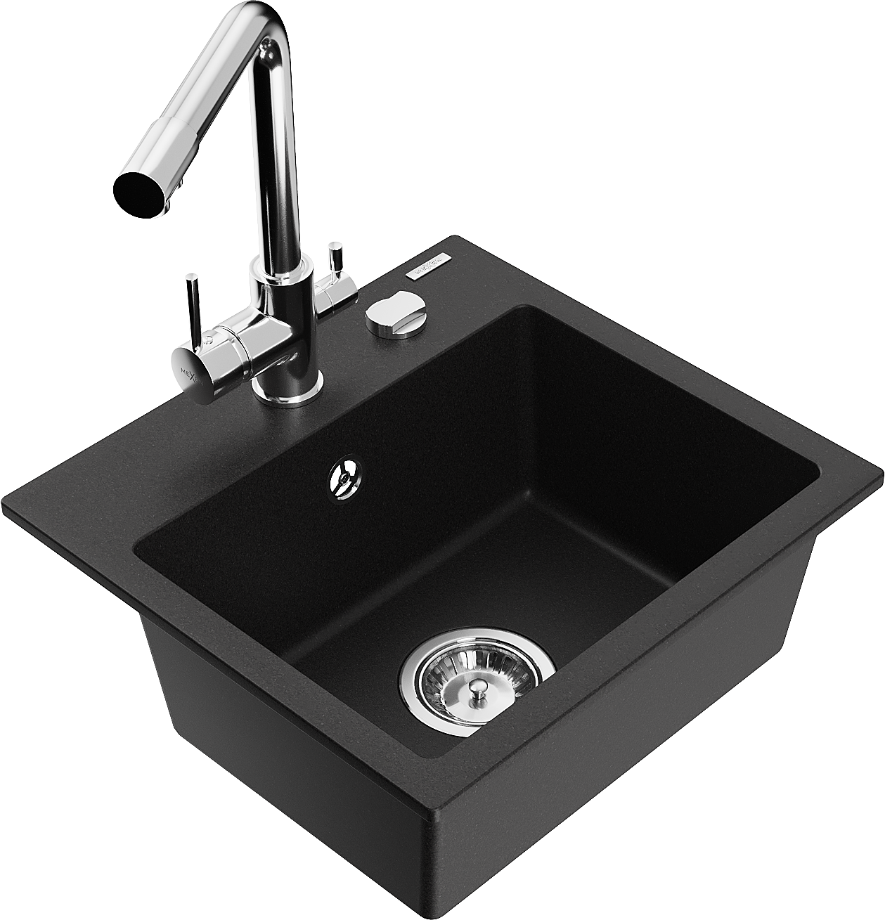 Mexen Milo granitový dřez 1-komorový s kuchyňskou baterií Duero, černý - 6505-77-671600-00