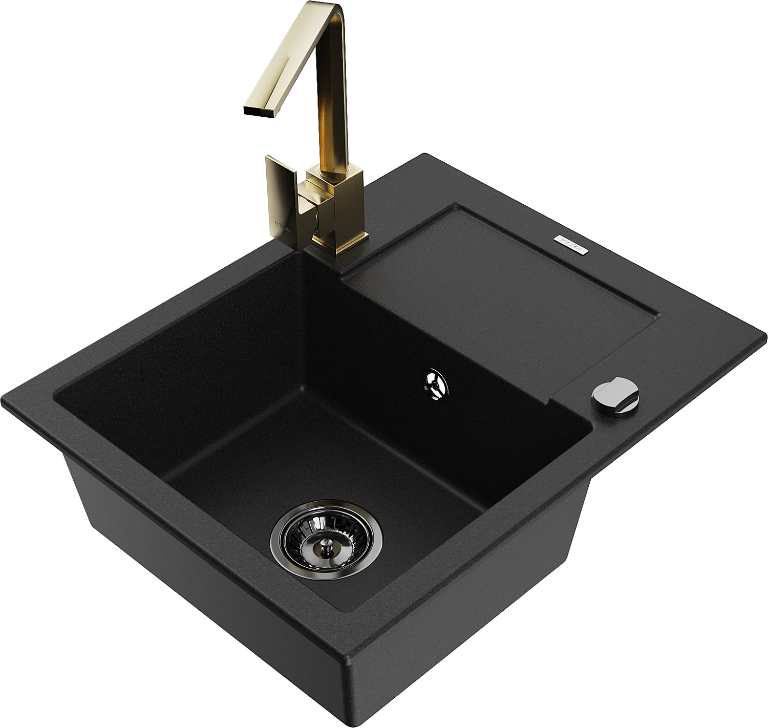 Mexen Enzo granitový dřez s 1 komorou, odkapávačem a kuchyňskou baterií Rita, černý - 6506-77-670300-50-B