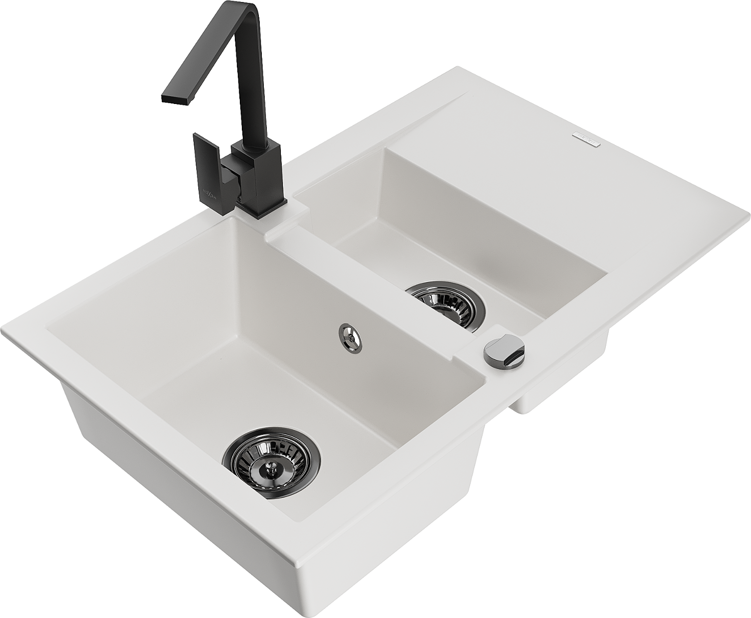 Mexen Gaspar žulový dřez 1,5-komorový s odkapem a kuchyňskou baterií Rita, bílý - 6507-20-670300-70