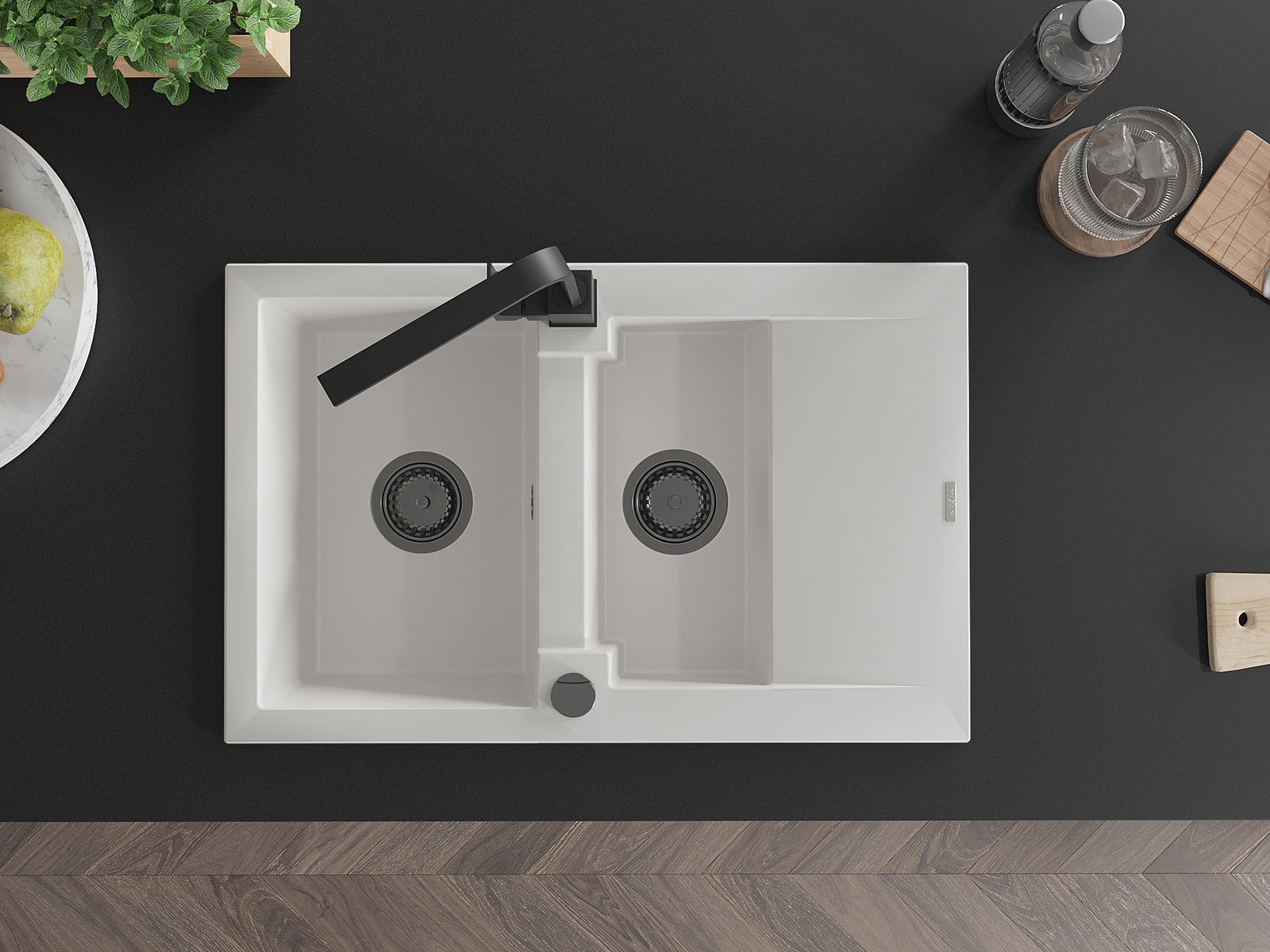 Povrch dřezu je velmi dobře vytvrzený, vyznačuje se výjimečnou odolností proti mechanickému poškození a poškrábání. Trvanlivý materiál umožňuje užívat si dobrý vzhled dřezu po mnoho let používání.