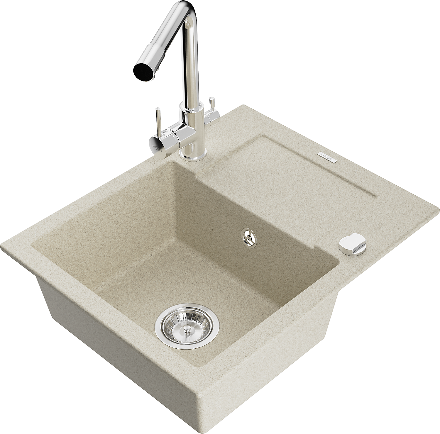 Mexen Enzo granitový dřez s 1 komorou, odkapávačem a kuchyňskou baterií Duero, béžový - 6506-69-671600-00