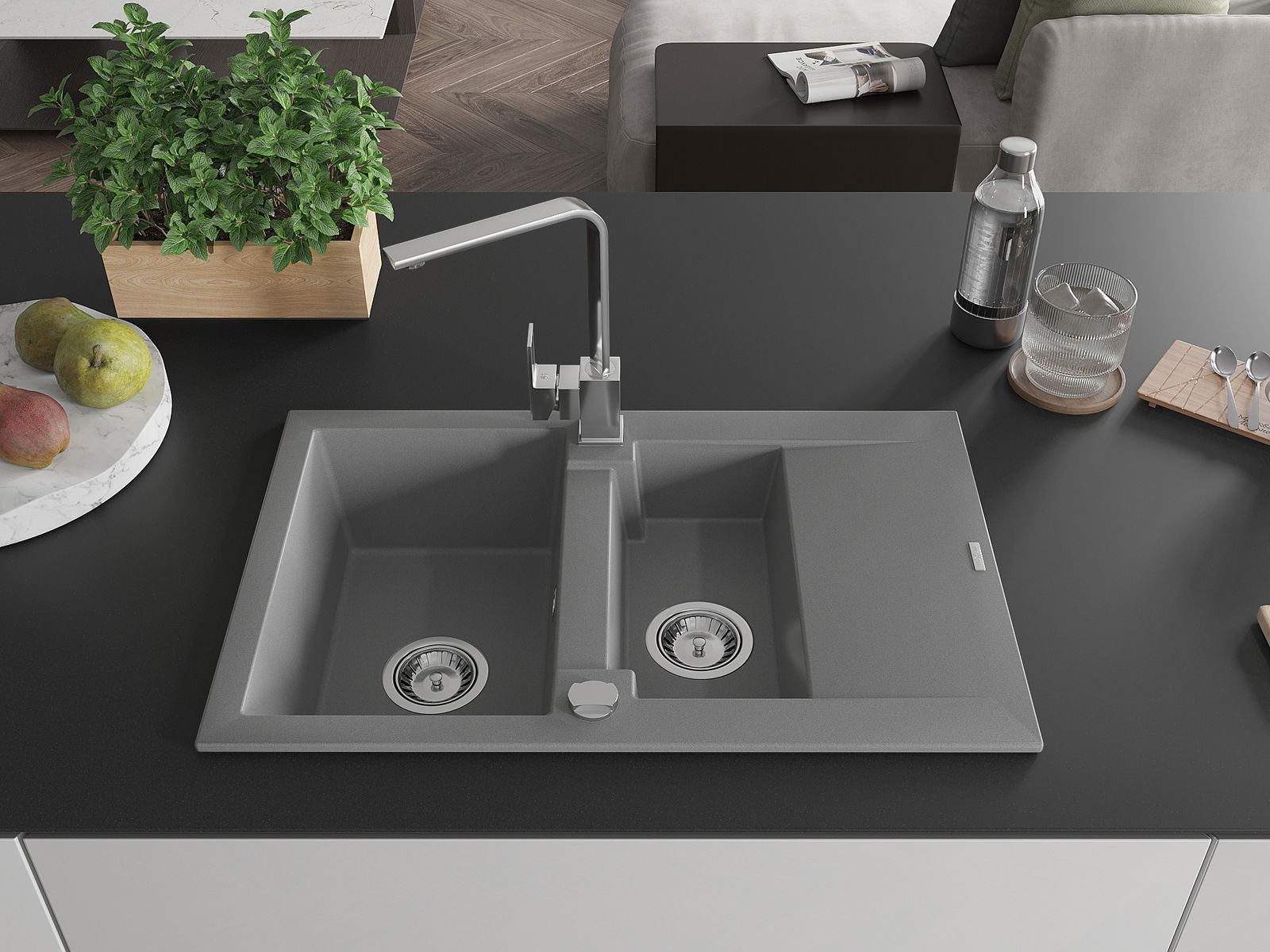 Dřez byl vyroben z vysoce kvalitního granitu. Představuje elegantní a především praktický doplněk každé kuchyně, bez ohledu na její styl. Vysoká kvalita a trvanlivost granitu zajišťují dlouholeté používání.