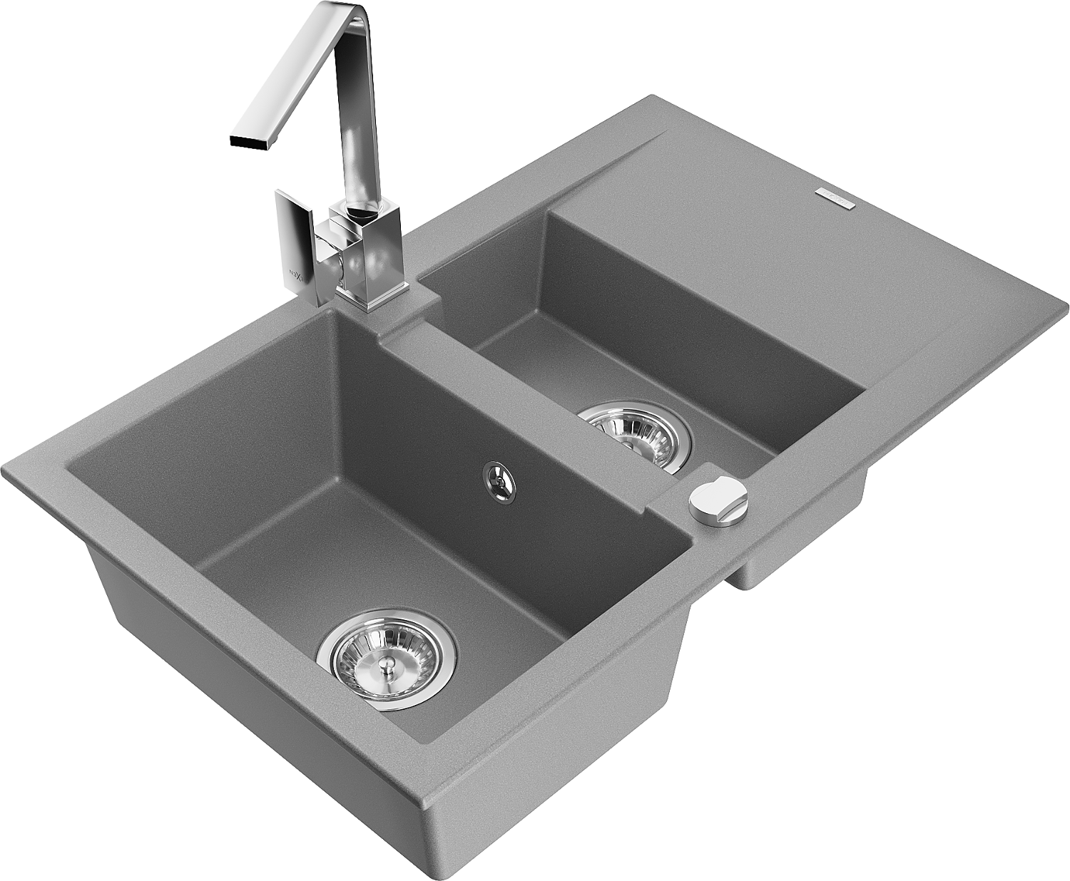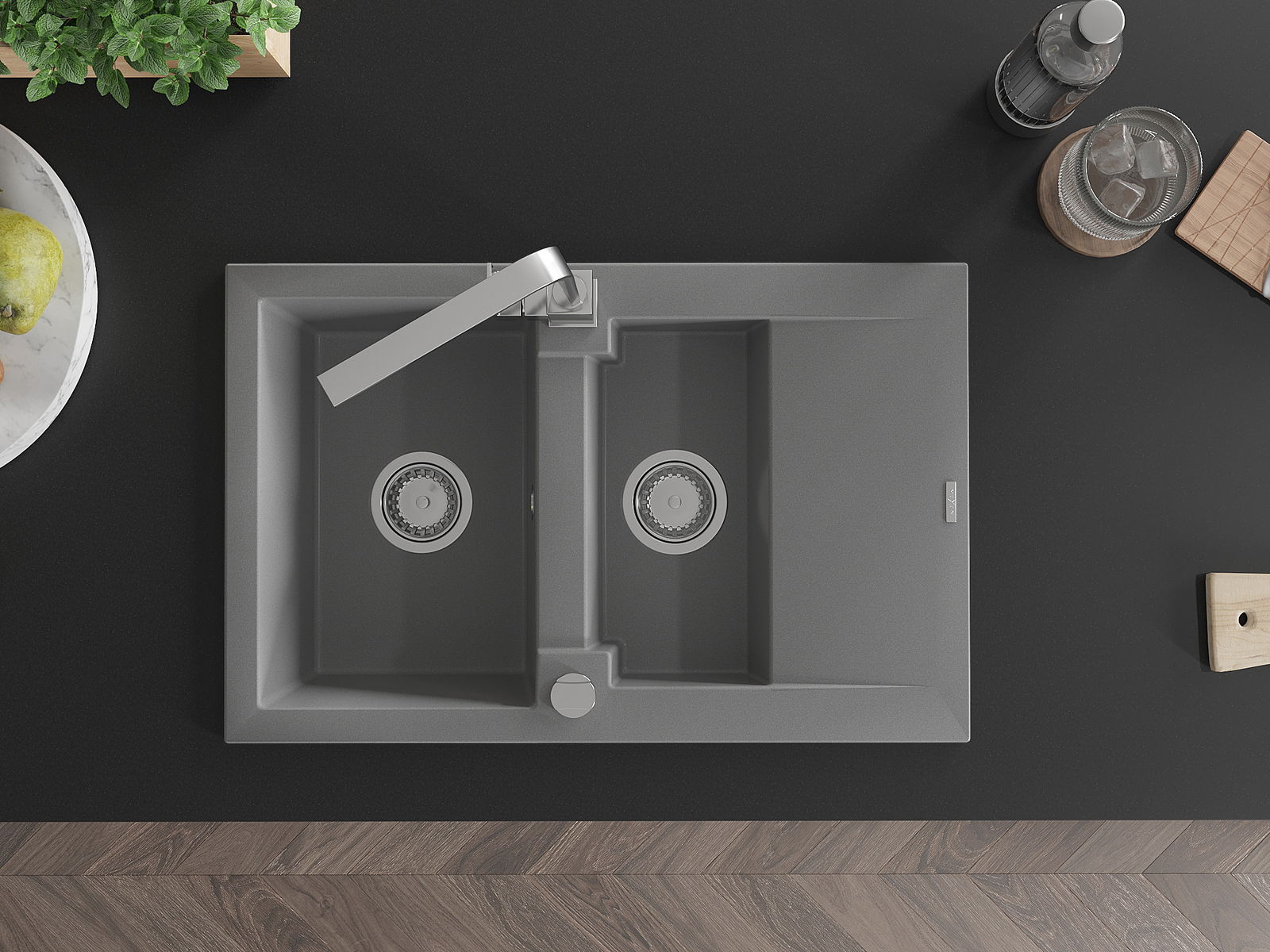 Mexen Gaspar granitový dřez 1,5-komorový s odkapávačem a kuchyňskou baterií Rita, šedý - 6507-71-670300-00
