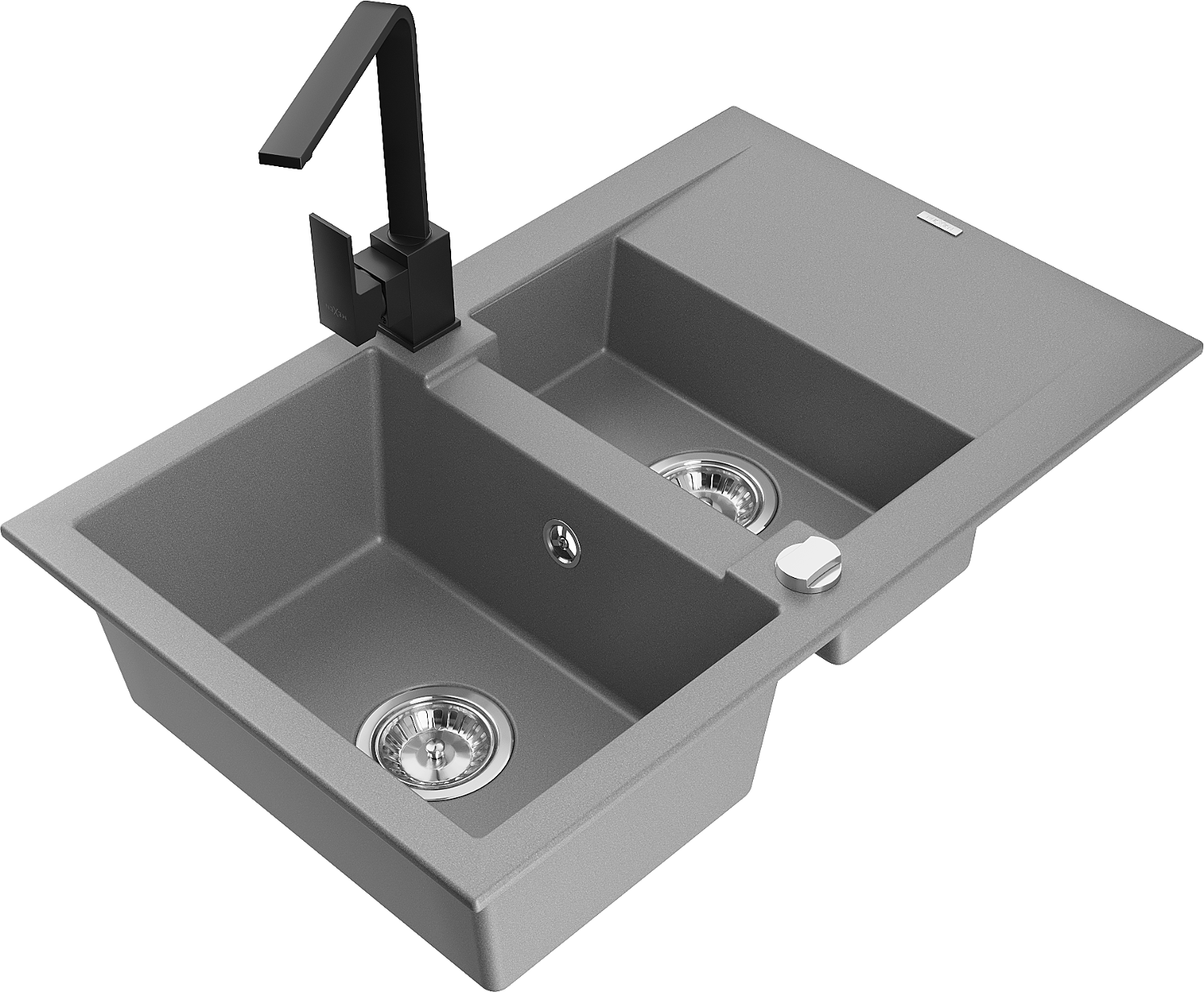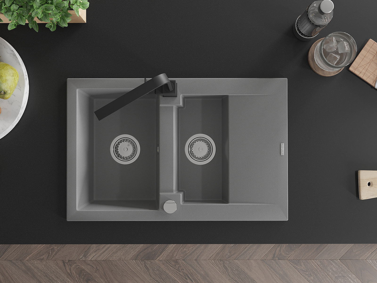 Mexen Gaspar granitový dřez 1,5-komorový s odkapávačem a kuchyňskou baterií Rita, šedý - 6507-71-670300-70