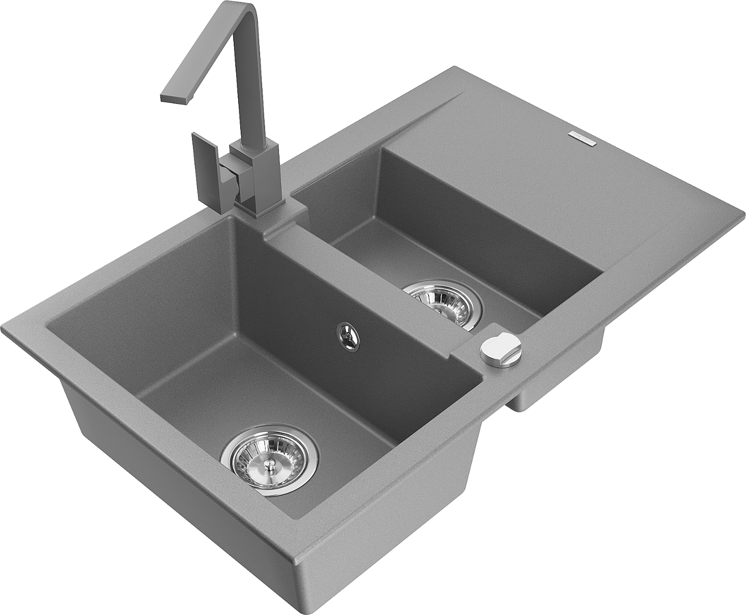 Mexen Gaspar granitový dřez 1,5-komorový s odkapávačem a kuchyňskou baterií Rita, šedý - 6507-71-670300-71