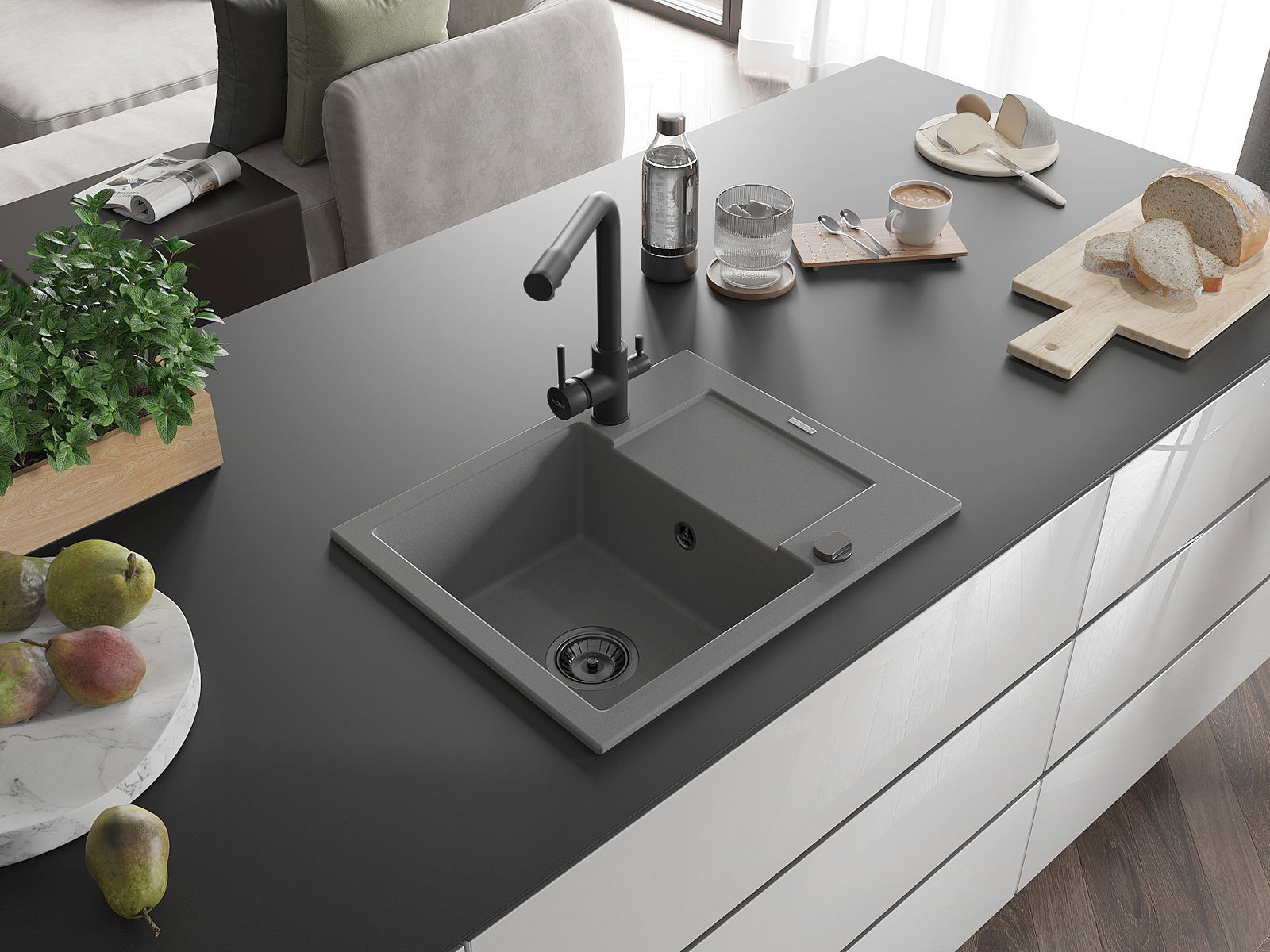 Dřez byl vyroben z vysoce kvalitního granitu. Představuje elegantní a především praktický doplněk každé kuchyně, bez ohledu na její styl. Vysoká kvalita a trvanlivost granitu zajišťují dlouholeté používání.