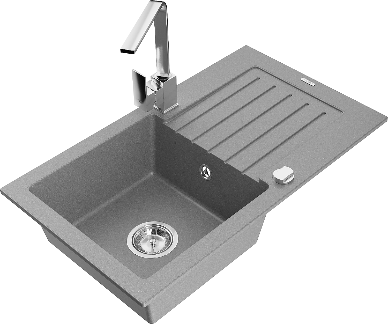 Mexen Pablo granitový dřez 1-komorový s odkapávačem a kuchyňskou baterií Rita, šedý - 6510-71-670300-00