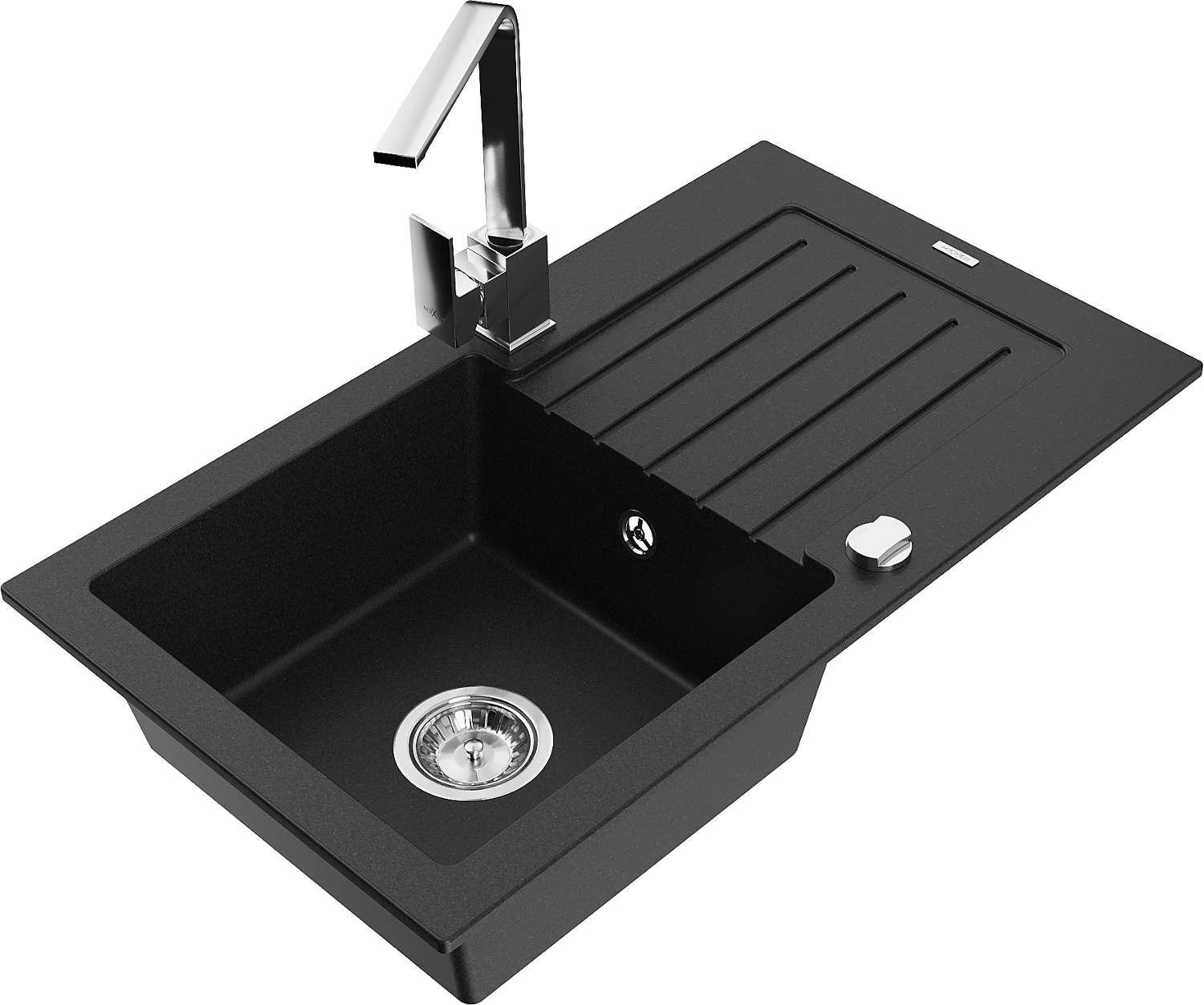 Mexen Pablo granitový dřez s 1 komorou, odkapávačem a kuchyňskou baterií Rita, černý - 6510-77-670300-00