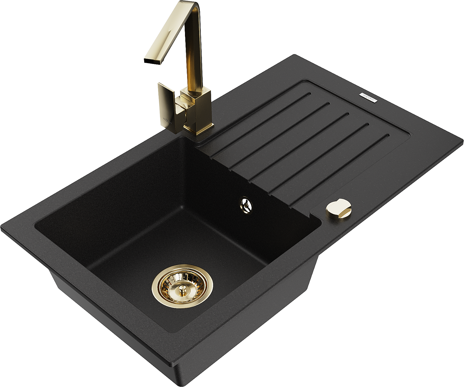 Mexen Pablo granitový dřez 1-komorový s odkapávačem a kuchyňskou baterií Rita, černý - 6510-77-670300-50