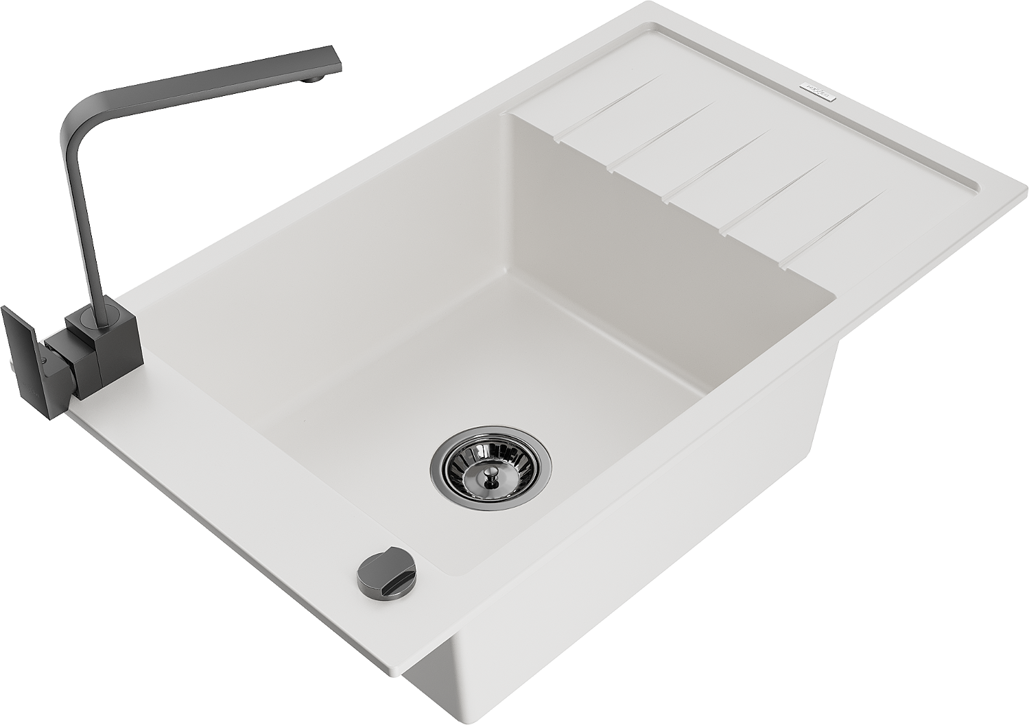 Povrch dřezu je odolný proti skvrnám a zabarvení, což usnadňuje jeho čištění a zachovává jeho barvu po dlouhou dobu používání. Estetický a praktický doplněk každé kuchyně.