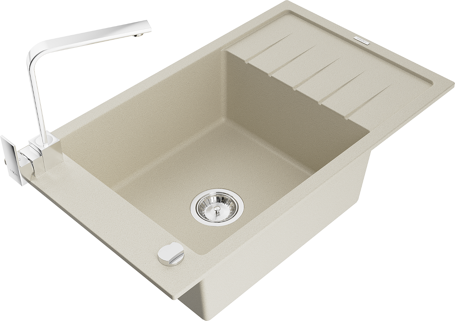 Mexen Elias granitový dřez 1-komorový s odkapem a kuchyňskou baterií Rita, béžový - 6511-69-670300-00