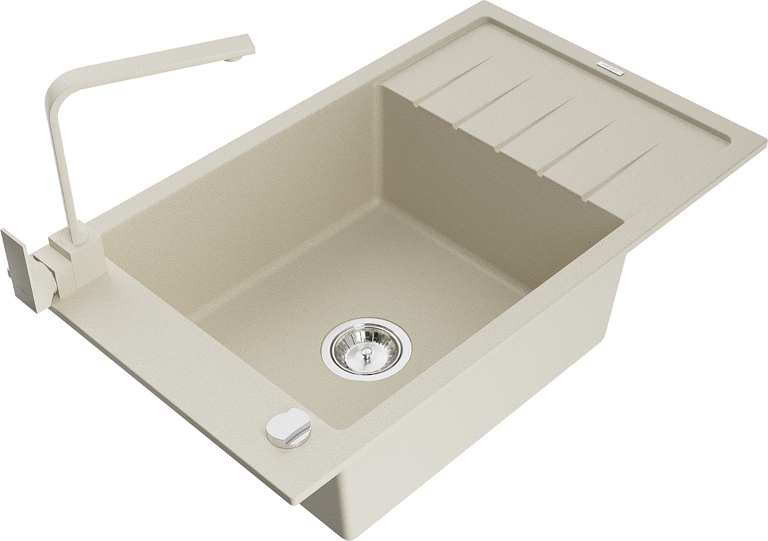 Mexen Elias granitový dřez 1-komorový s odkapávačem a kuchyňskou baterií Rita, béžový - 6511-69-670300-69