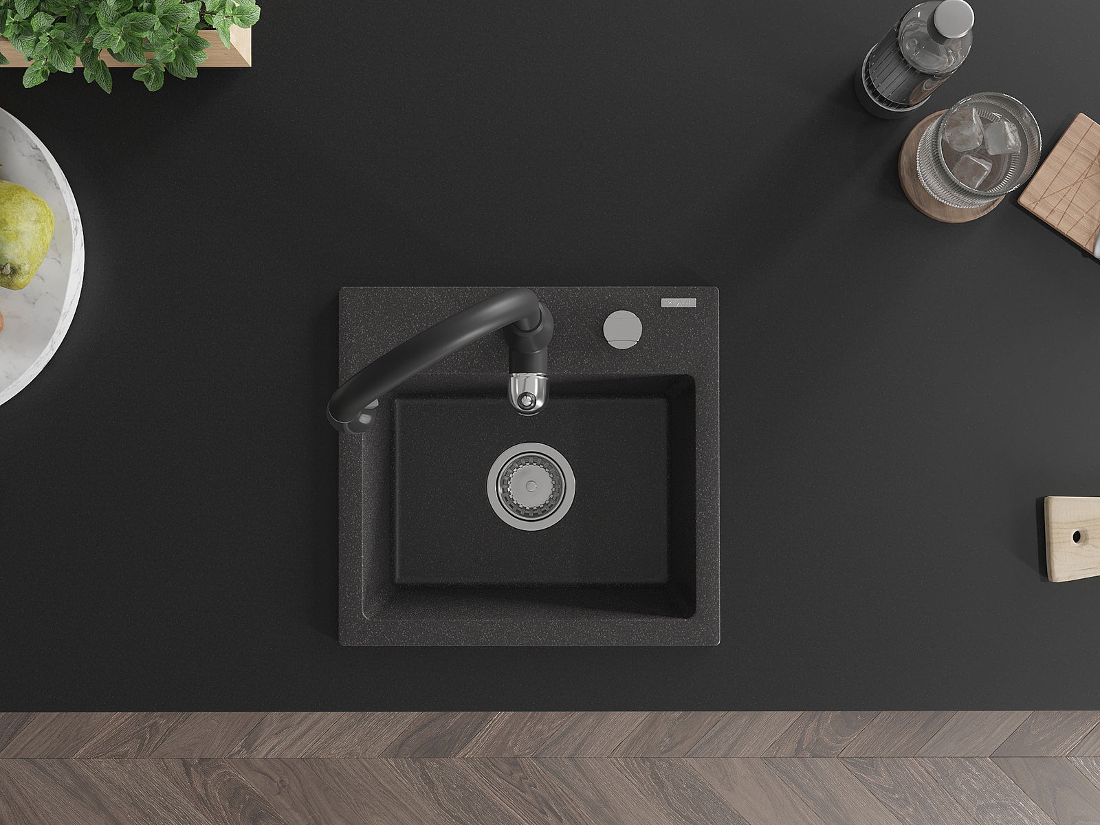 Dřez má předfrézovaný otvor o průměru 35 mm k samostatnému proražení. Může být použit například k montáži dávkovače na tekutinu, který eliminuje přítomnost plastových lahví v kuchyni a dodá jí elegantní finiš.