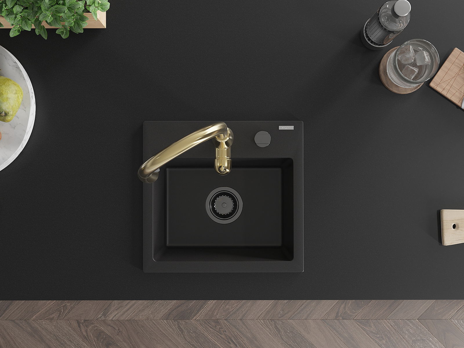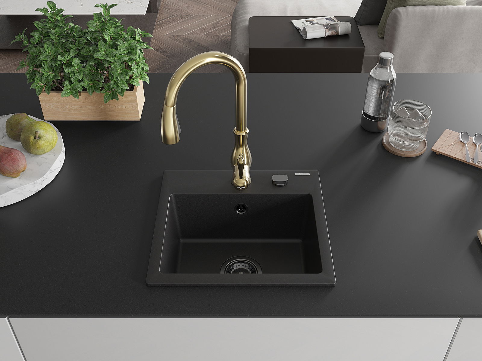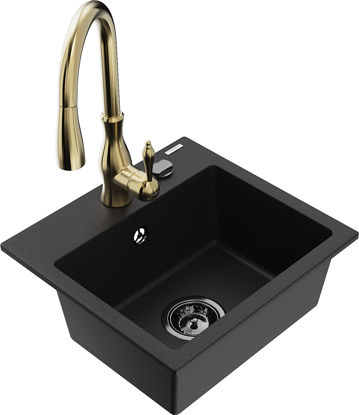 Mexen Milo Granitový dřez s 1 komorou s kuchyňskou baterií Savita, černý - 6505-77-672601-50-B