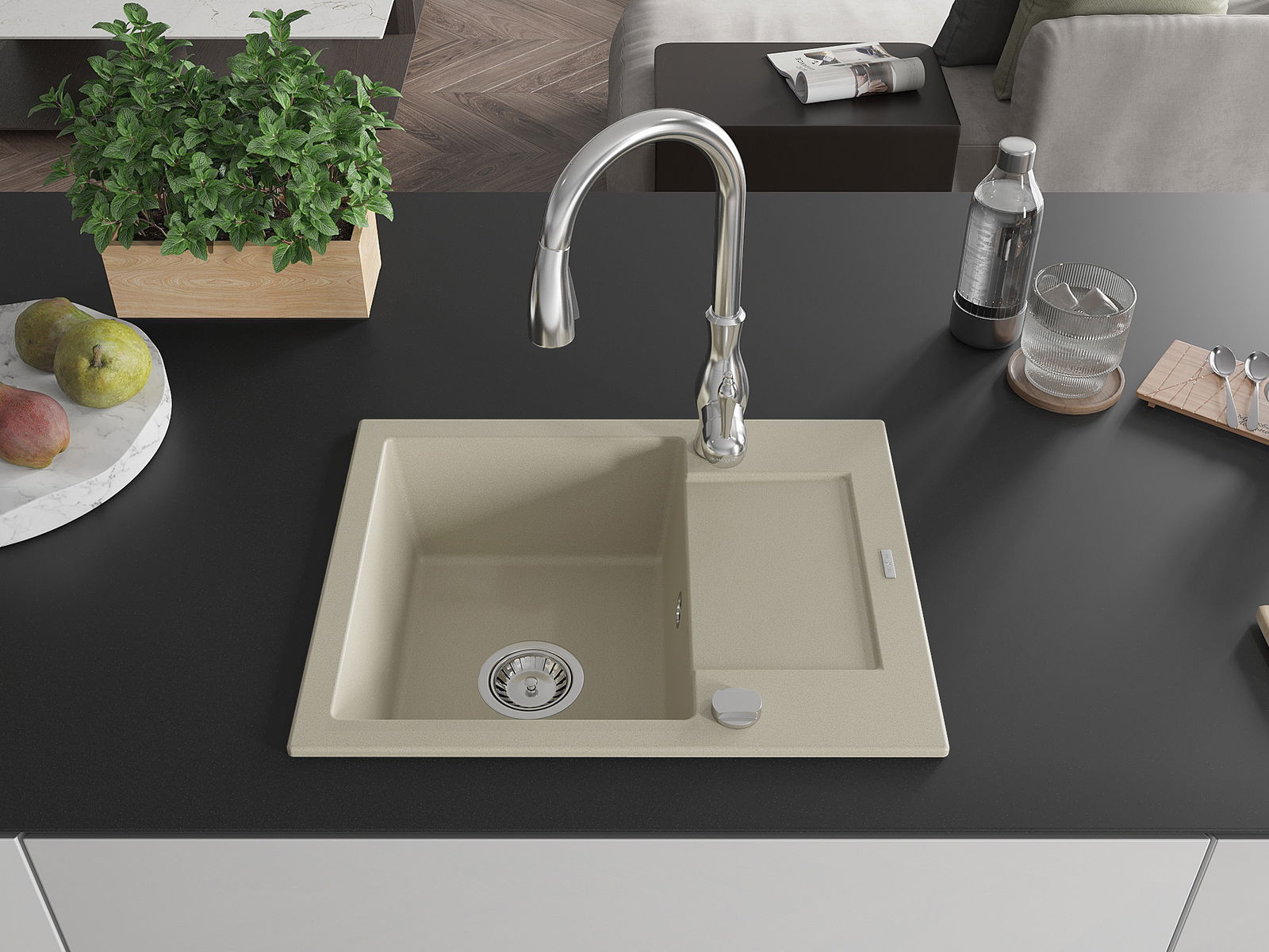 Dřez byl vyroben z vysoce kvalitního granitu. Představuje elegantní a především praktický doplněk každé kuchyně, bez ohledu na její styl. Vysoká kvalita a trvanlivost granitu zajišťují dlouholeté používání.