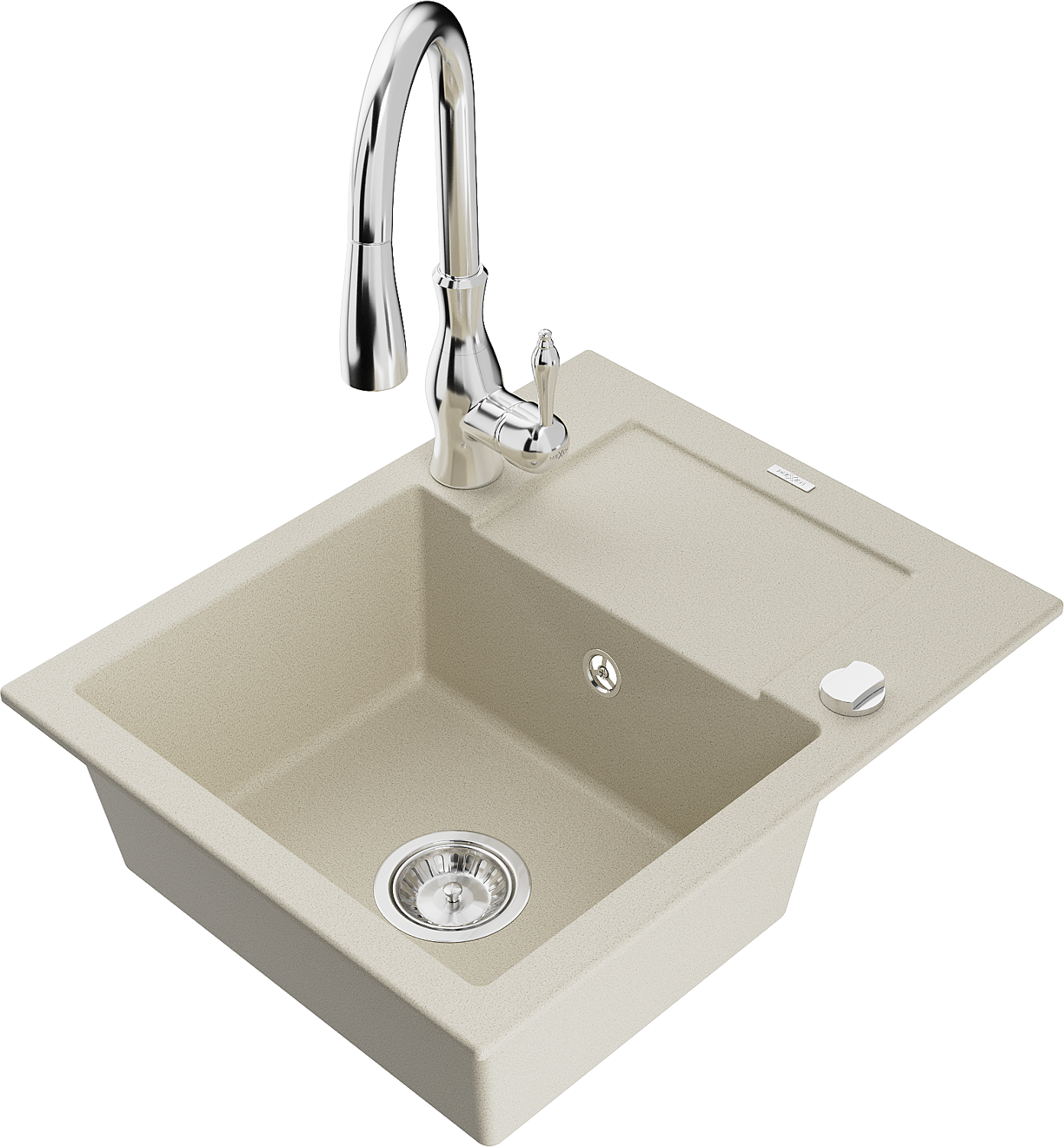 Mexen Enzo jednokomorový granitový dřez s odkapávačem a kuchyňskou baterií Savita, béžový - 6506-69-672601-00