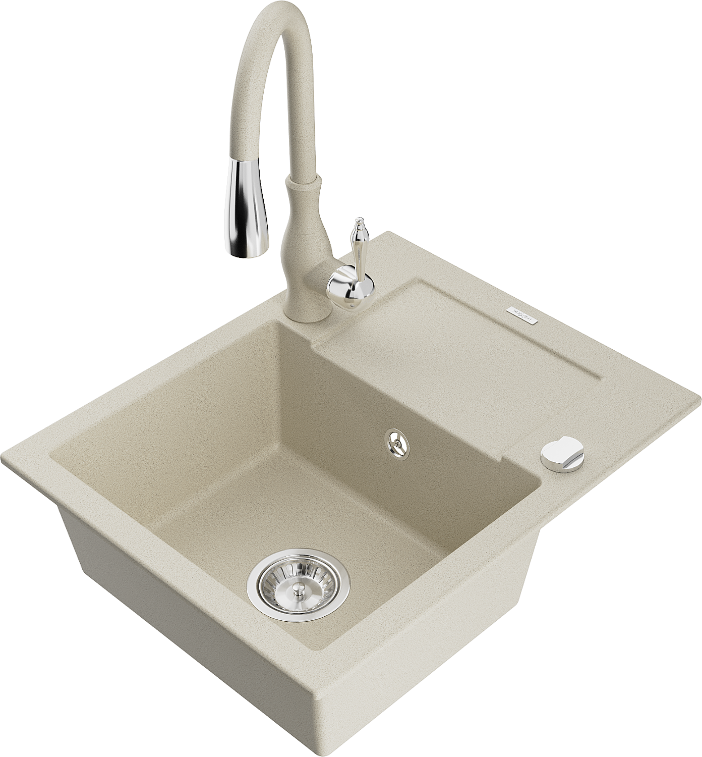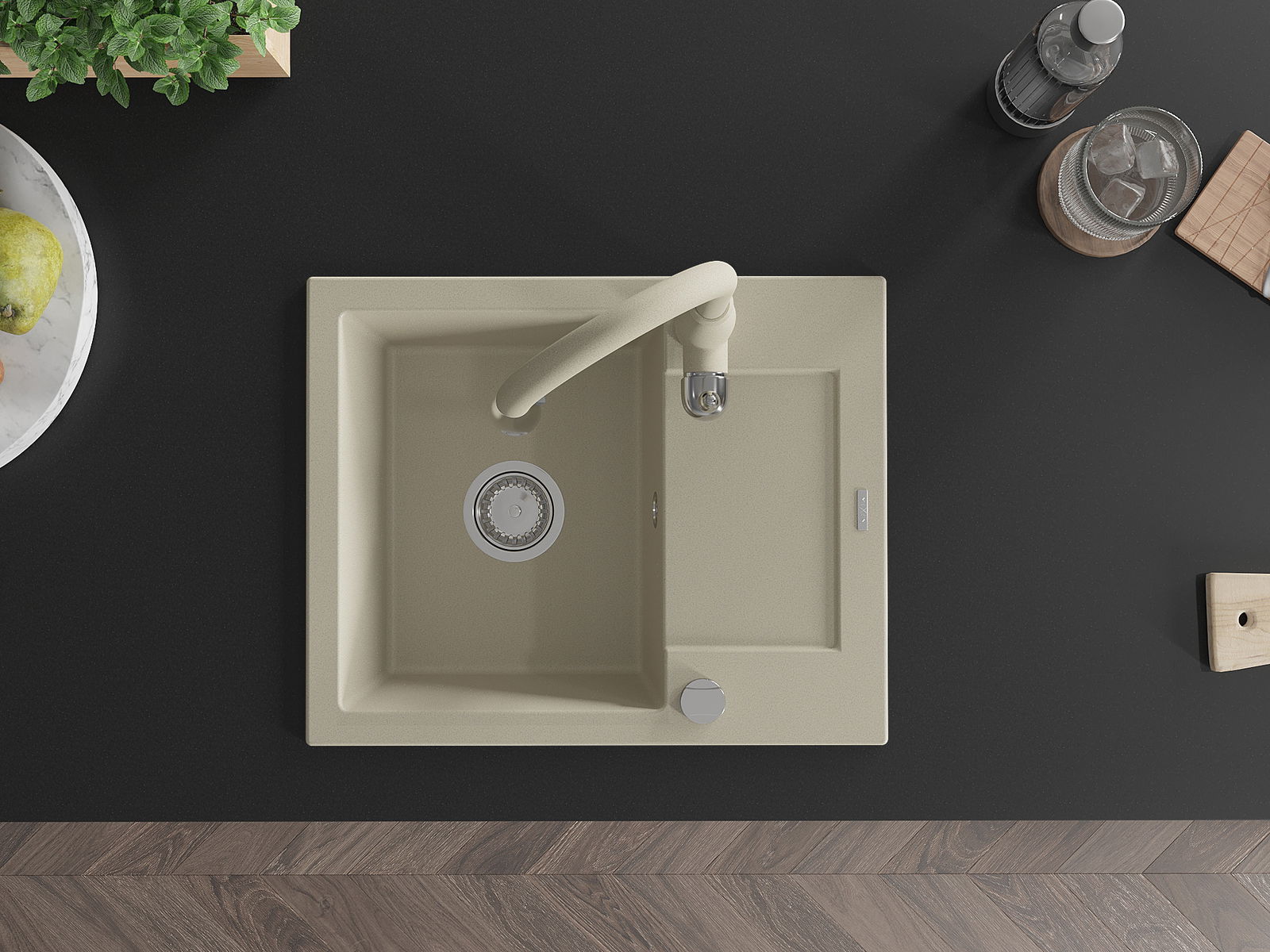 Mexen Enzo granitový dřez 1-komorový s odkapávačem a kuchyňskou baterií Savita, béžový - 6506-69-672601-69