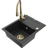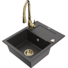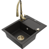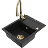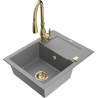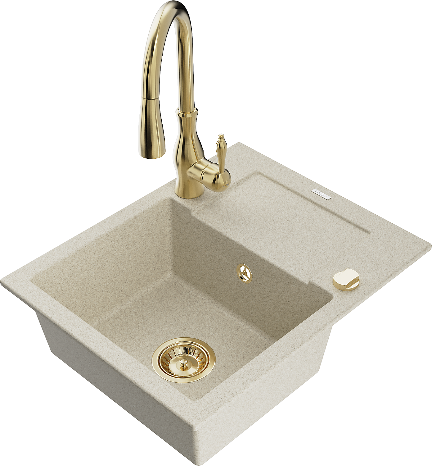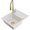 Mexen Enzo granitový dřez s jednou komorou, odkapávačem a kuchyňskou baterií Savita, béžový - 6506-69-672601-50