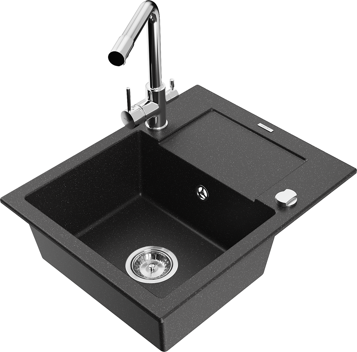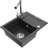 Mexen Enzo granitový dřez 1-komorový s odkapávačem a kuchyňskou baterií Duero, černý/stříbrný metalic - 6506-73-671600-00