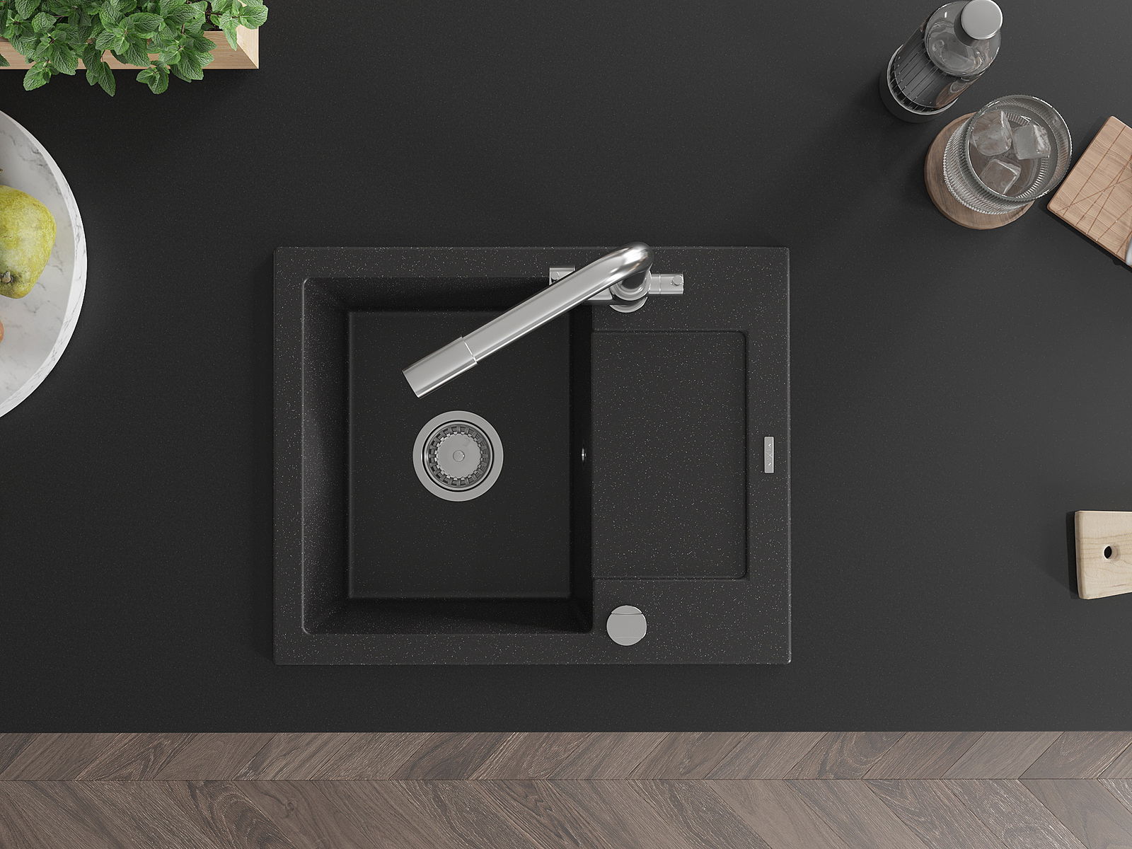 Dřez byl vyroben z vysoce kvalitního granitu. Představuje elegantní a především praktický doplněk každé kuchyně, bez ohledu na její styl. Vysoká kvalita a trvanlivost granitu zajišťují dlouholeté používání.