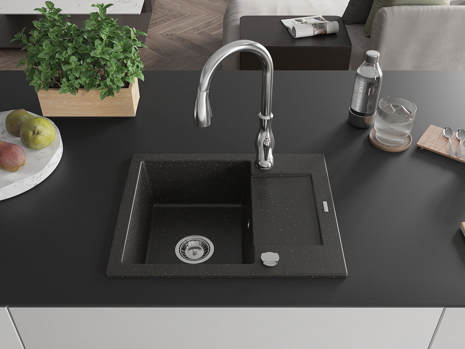 Dřez byl vyroben z vysoce kvalitního granitu. Představuje elegantní a především praktický doplněk každé kuchyně, bez ohledu na její styl. Vysoká kvalita a trvanlivost granitu zajišťují dlouholeté používání.