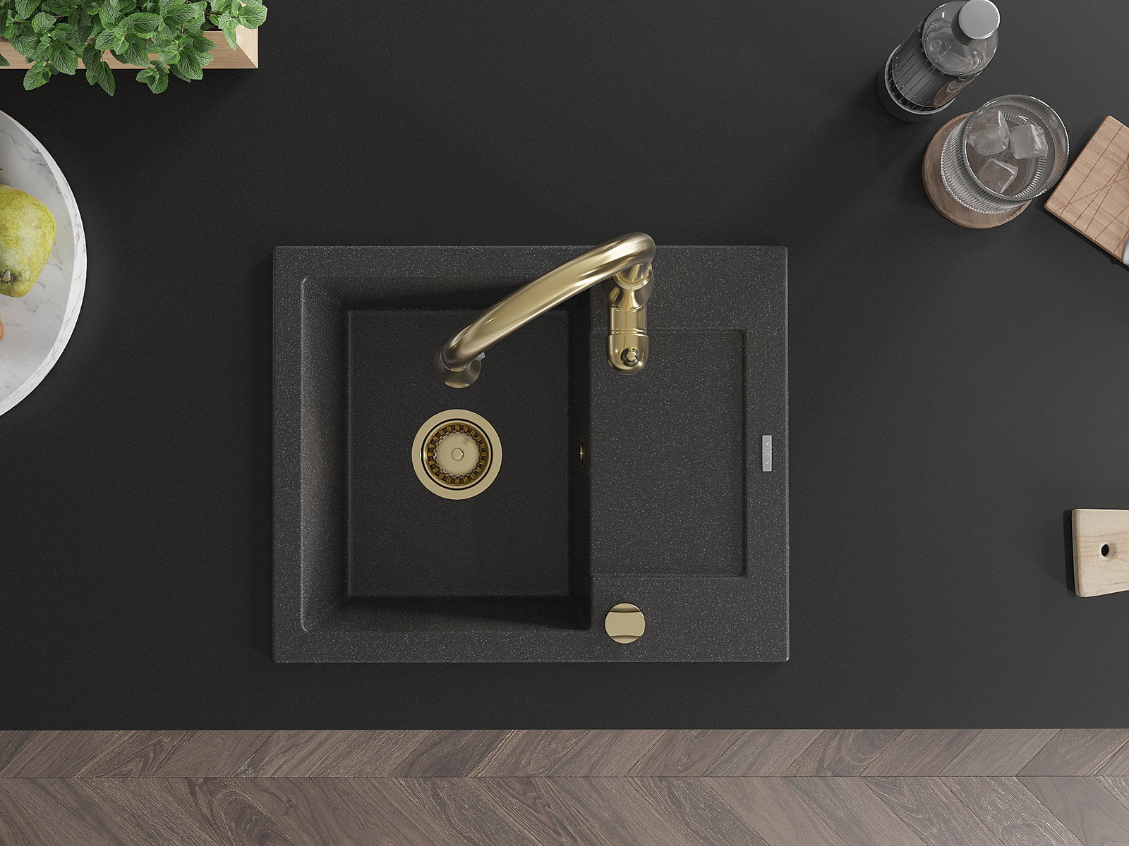 Mexen Enzo granitový dřez 1-komorový s odkapávačem a kuchyňskou baterií Savita, černý skvrnitý - 6506-76-672601-50