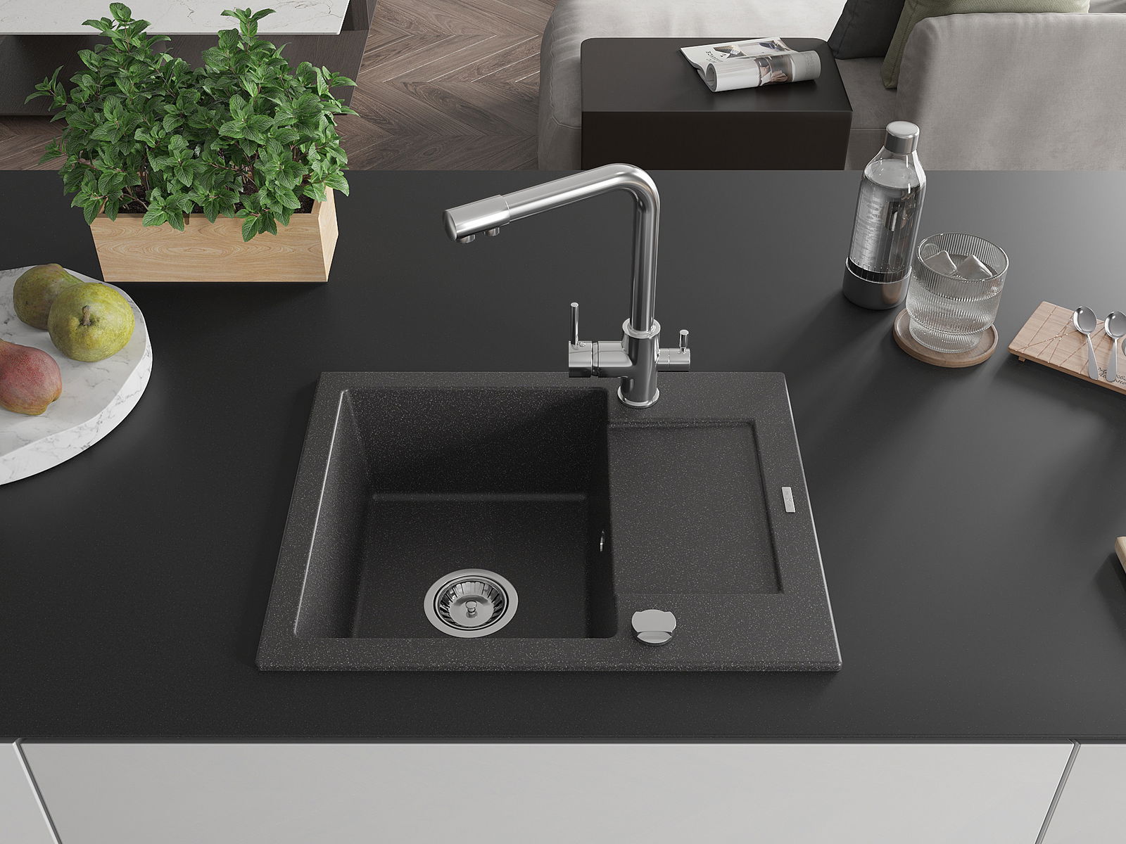 Dřez byl vyroben z vysoce kvalitního granitu. Představuje elegantní a především praktický doplněk každé kuchyně, bez ohledu na její styl. Vysoká kvalita a trvanlivost granitu zajišťují dlouholeté používání.