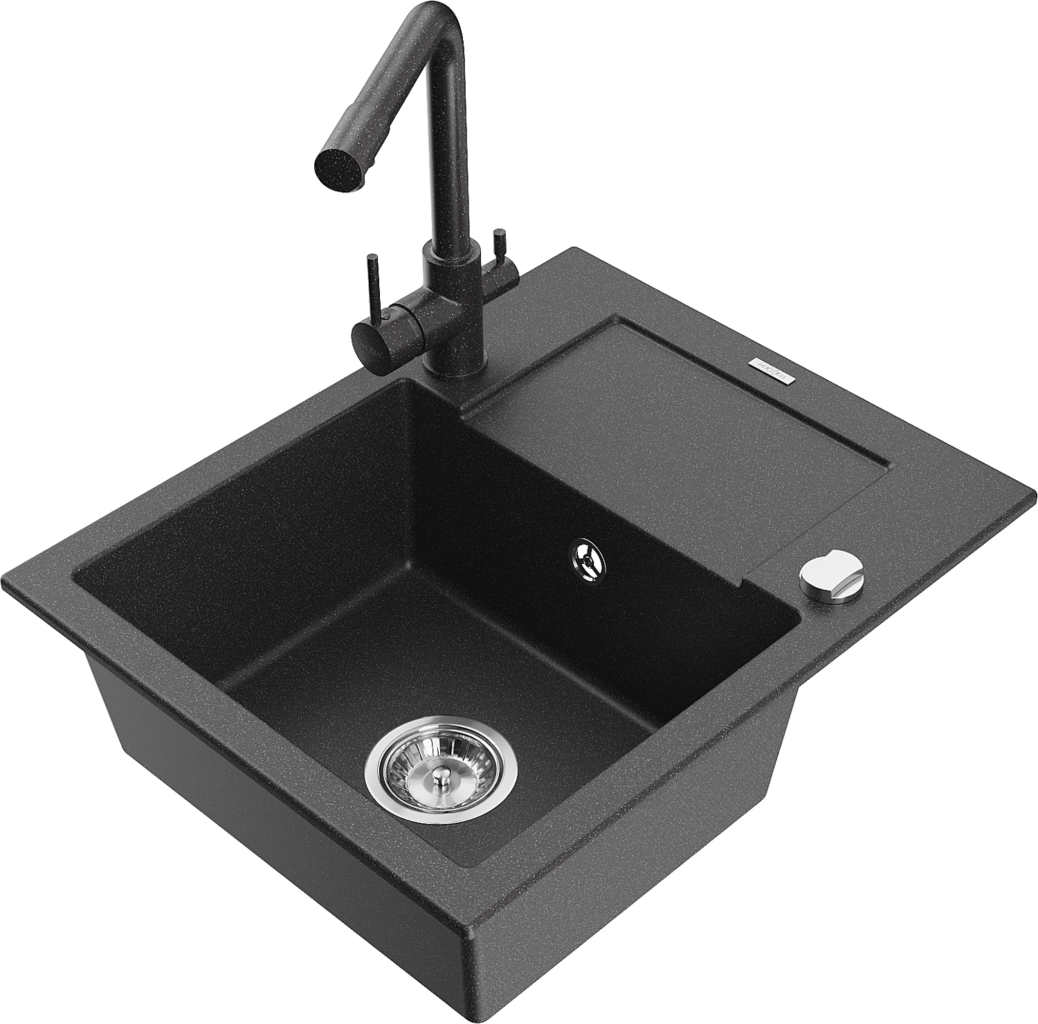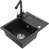 Mexen Enzo granitový kuchyňský dřez 1-komorový s odkapávačem a kuchyňskou baterií Duero, černý s tečkami - 6506-76-671600-76