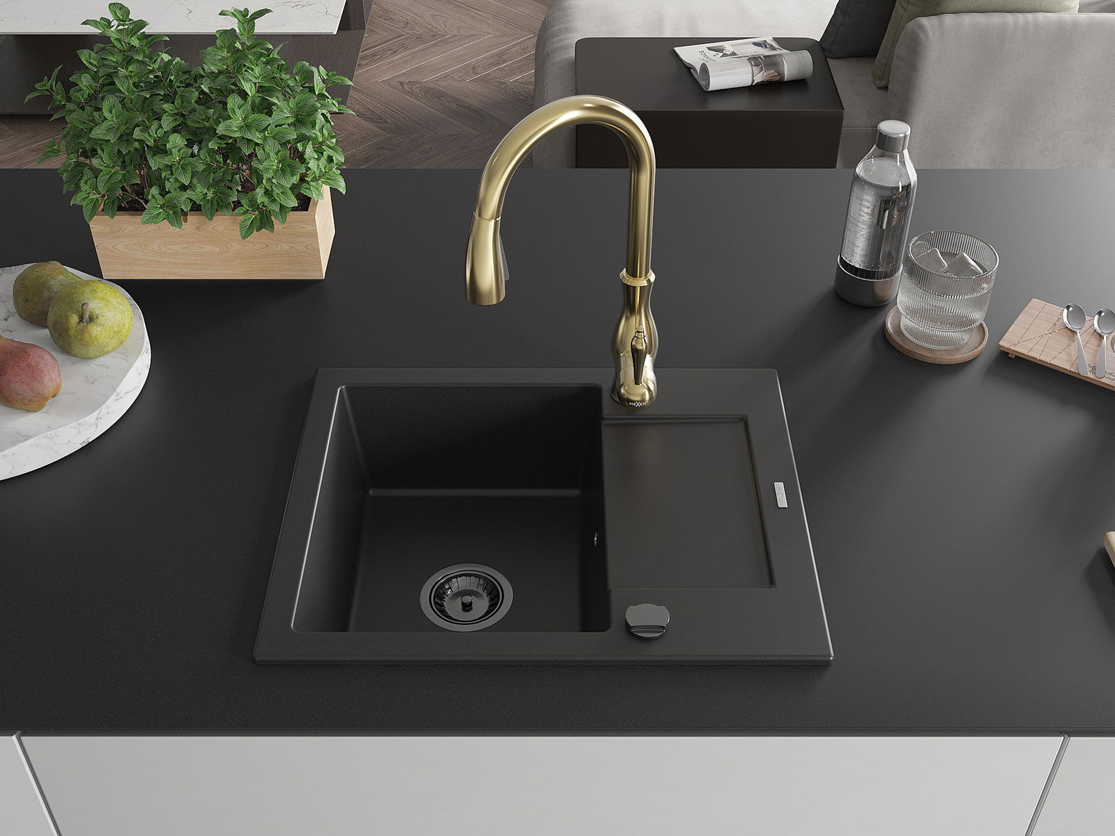 Dřez byl vyroben z vysoce kvalitního granitu. Představuje elegantní a především praktický doplněk každé kuchyně, bez ohledu na její styl. Vysoká kvalita a trvanlivost granitu zajišťují dlouholeté používání.