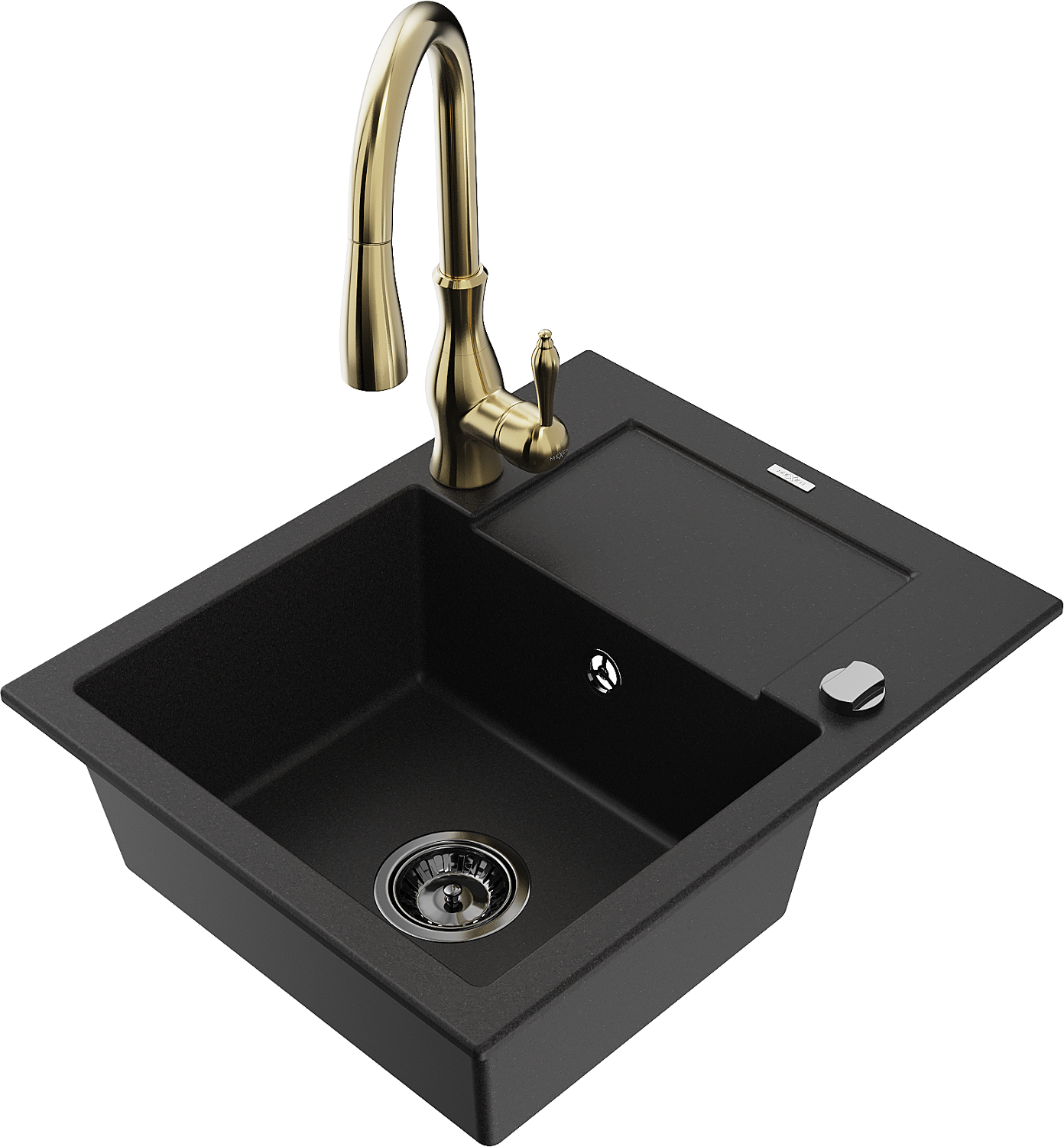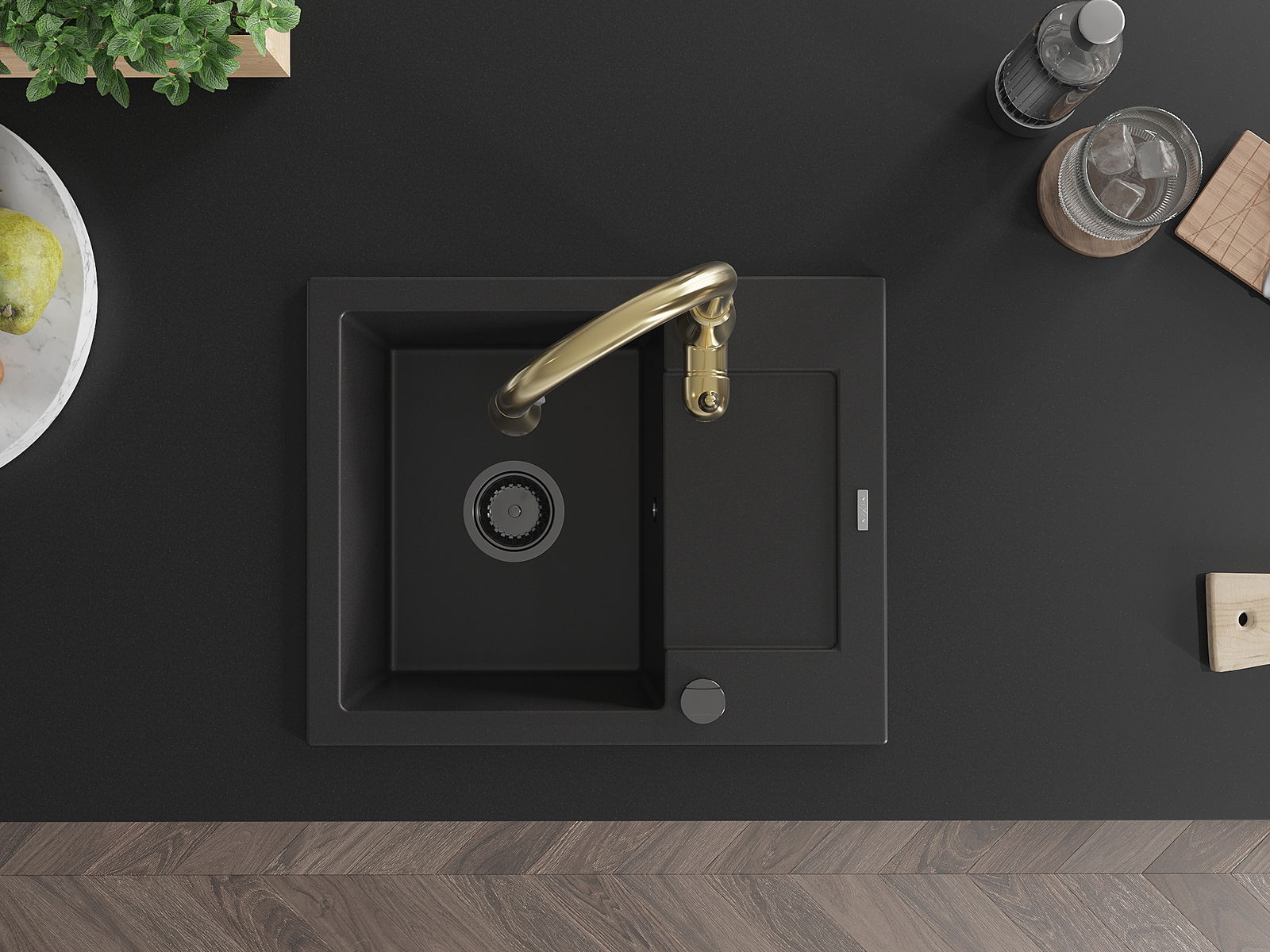 Mexen Enzo granitový dřez s 1 komorou a odkapávačem a kuchyňskou baterií Savita, černý - 6506-77-672601-50-B