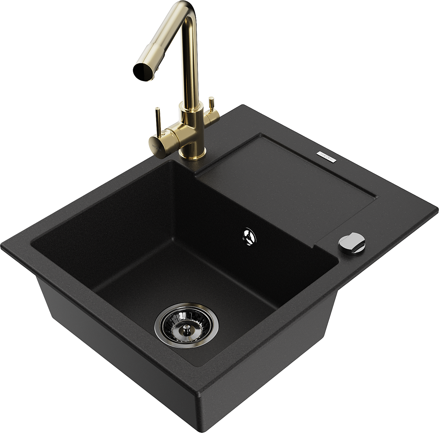 Mexen Enzo granitový dřez 1-komorový s odkapávačem a kuchyňskou baterií Duero, černý - 6506-77-671600-50-B
