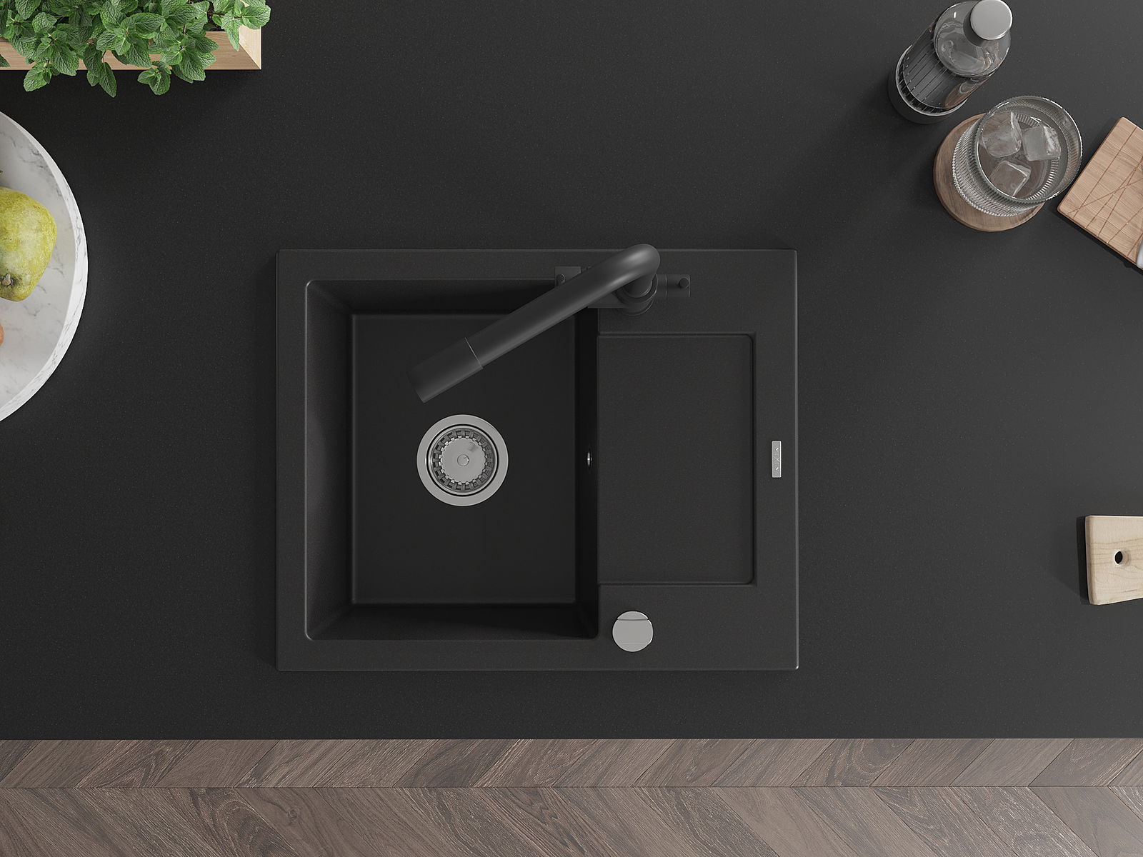 Mexen Enzo granitový dřez 1-komorový s odkapávačem a kuchyňskou baterií Duero, černý - 6506-77-671600-70
