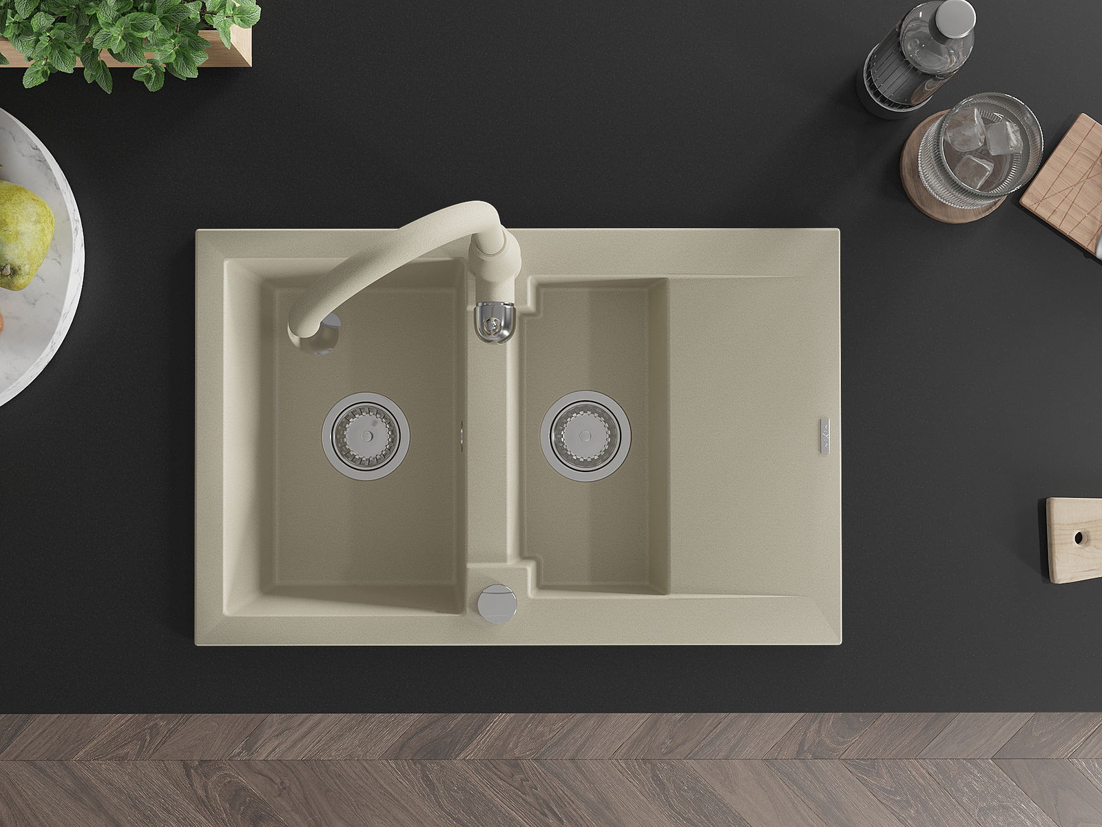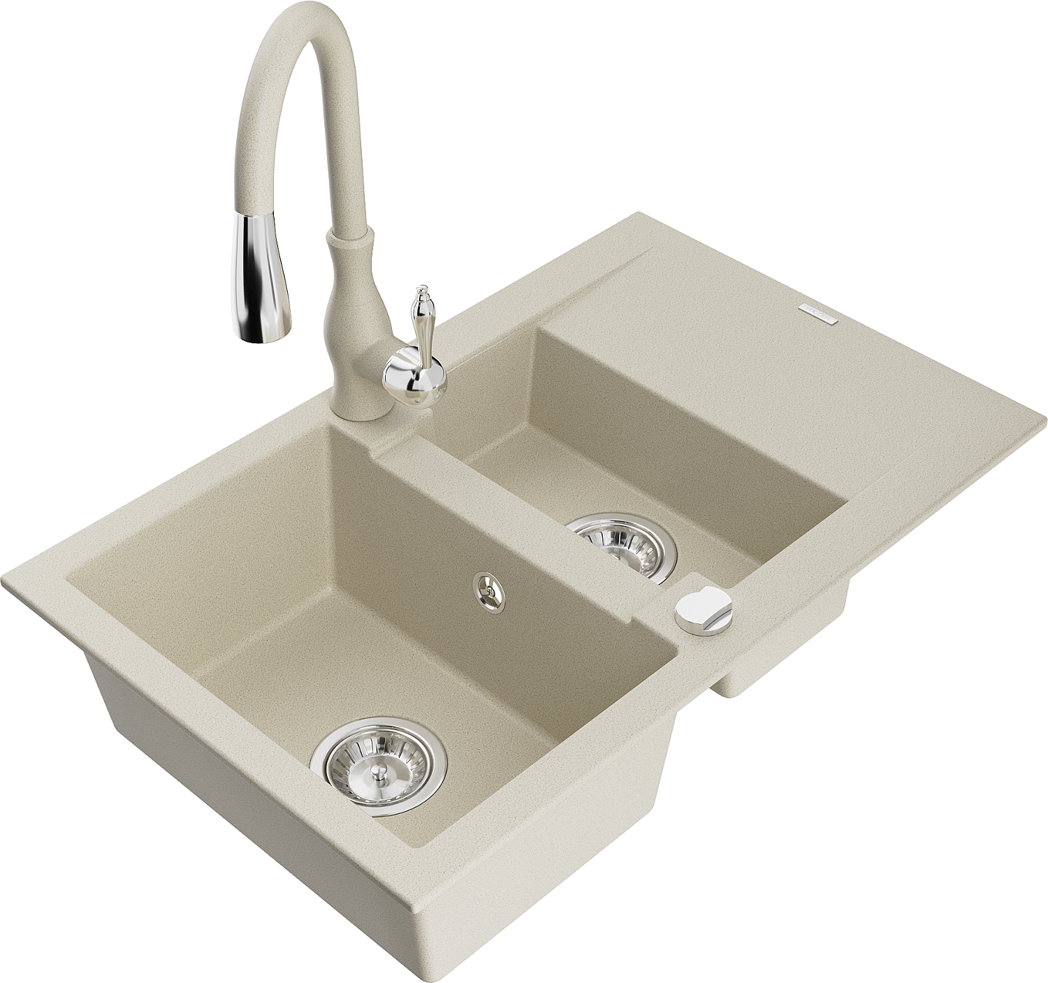 Mexen Gaspar granitový dřez 1,5-komorový s odkapávačem a kuchyňskou baterií Savita, béžový - 6507-69-672601-69