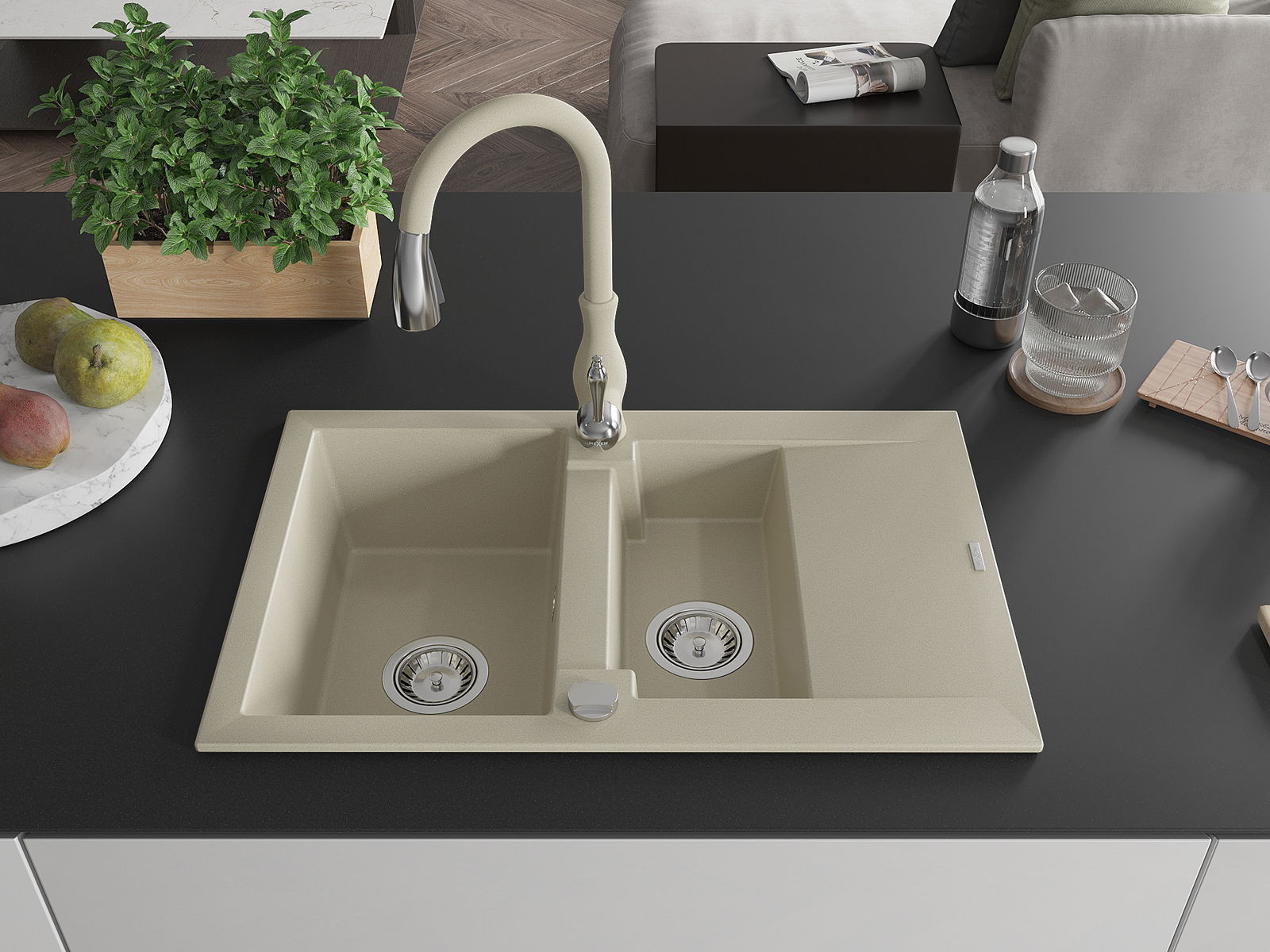 Dřez byl vyroben z vysoce kvalitního granitu. Představuje elegantní a především praktický doplněk každé kuchyně, bez ohledu na její styl. Vysoká kvalita a trvanlivost granitu zajišťují dlouholeté používání.