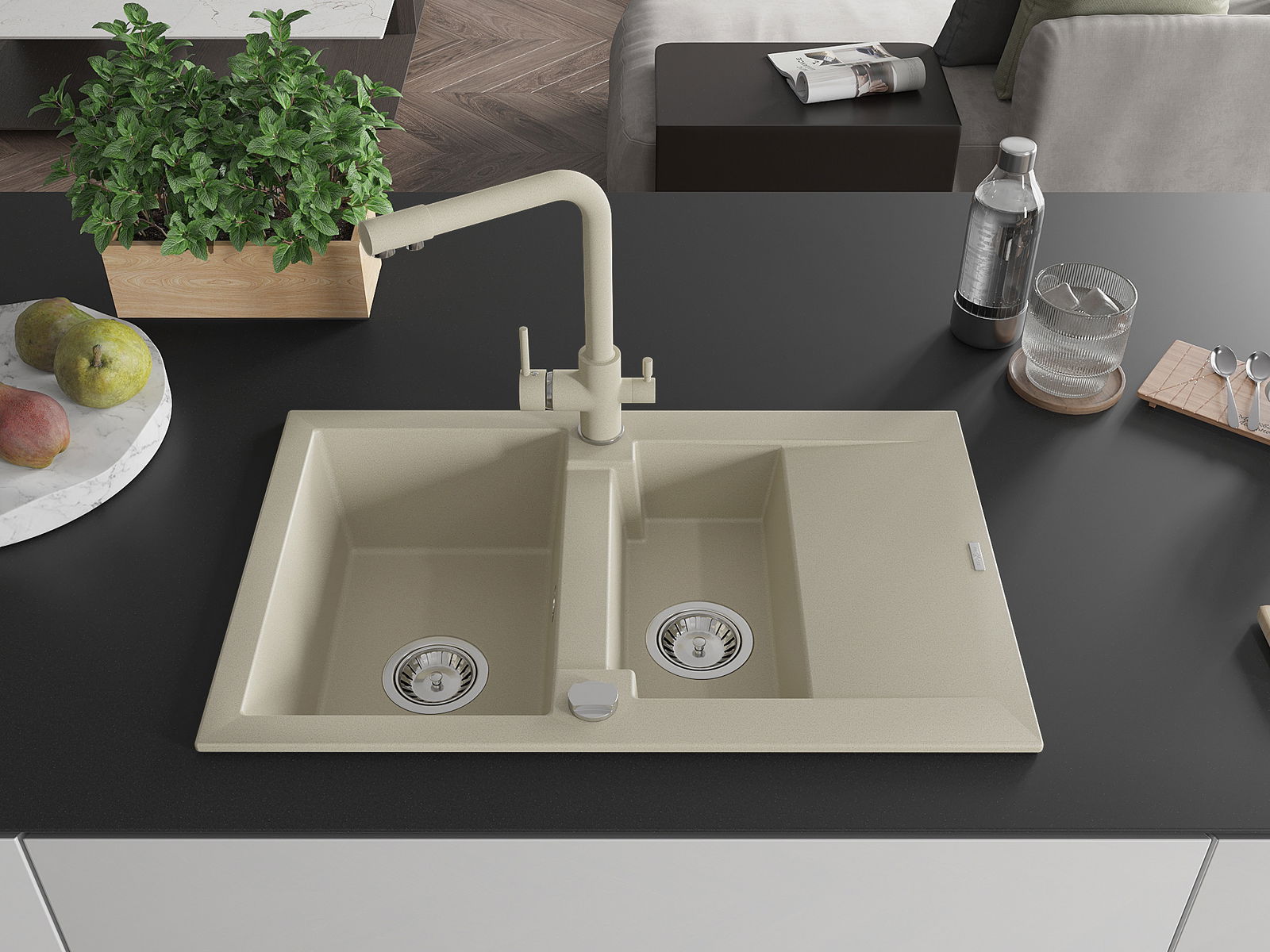 Dřez byl vyroben z vysoce kvalitního granitu. Představuje elegantní a především praktický doplněk každé kuchyně, bez ohledu na její styl. Vysoká kvalita a trvanlivost granitu zajišťují dlouholeté používání.