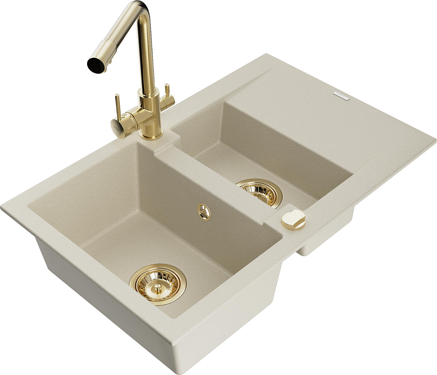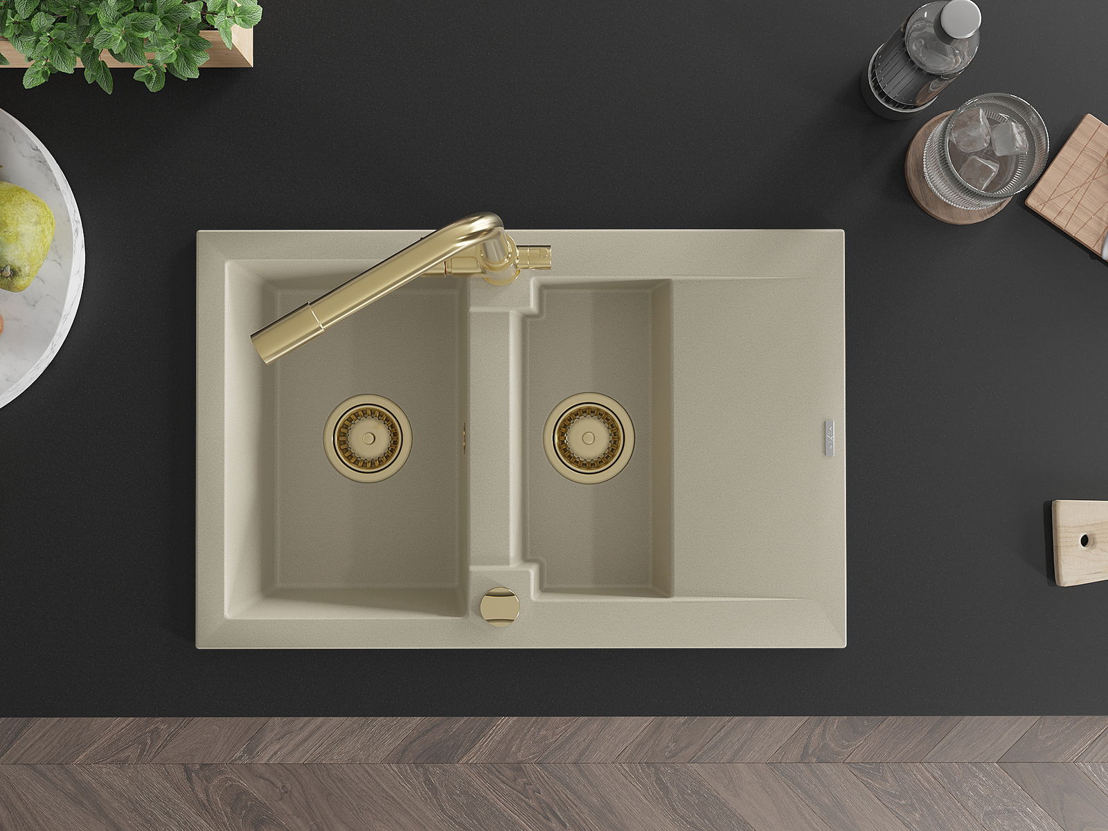 Mexen Gaspar granitový 1,5-komorový dřez s odkapávačem a kuchyňskou baterií Duero, béžový - 6507-69-671600-50
