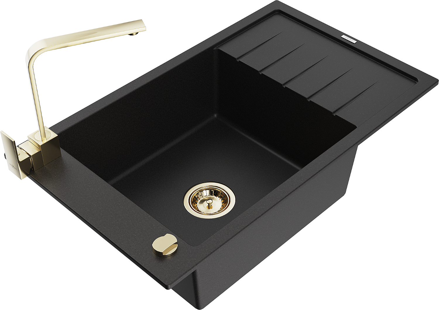 Mexen Elias granitový dřez 1-komorový s odkapávačem a kuchyňskou baterií Rita, černý - 6511-77-670300-50