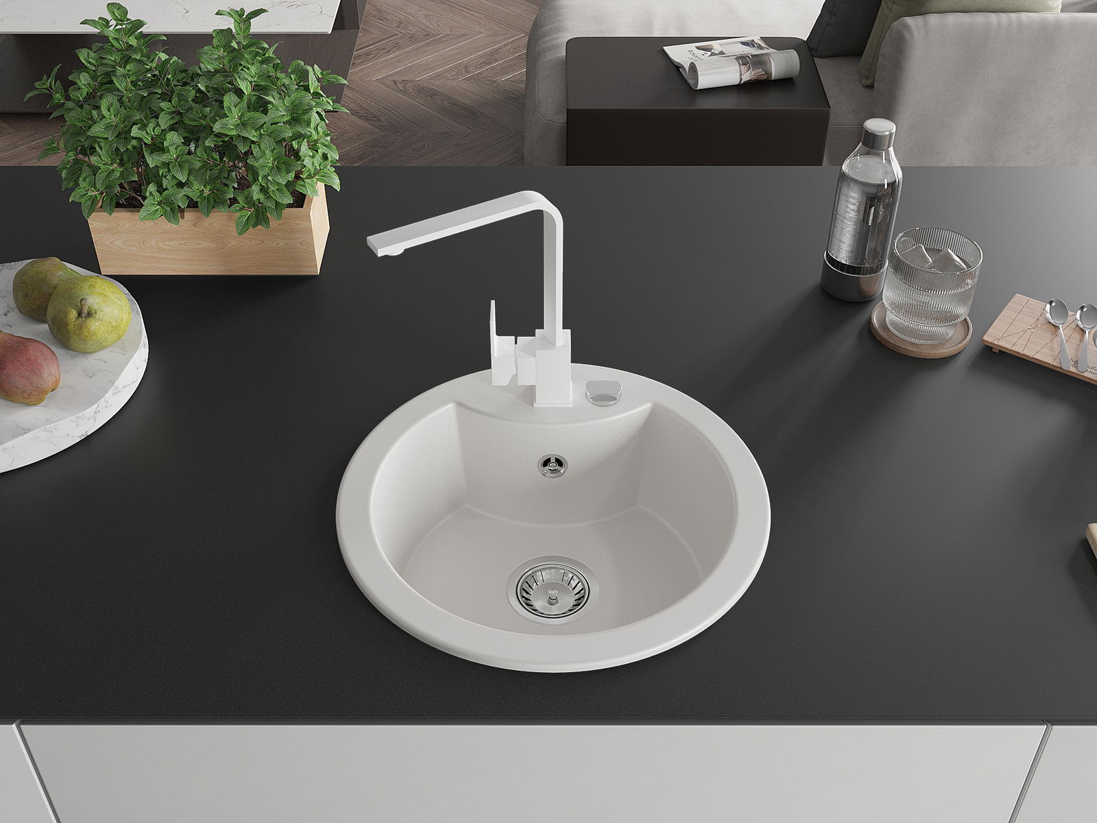Povrch dřezu je odolný proti skvrnám a zabarvení, což usnadňuje jeho čištění a zachovává jeho barvu po dlouhou dobu používání. Estetický a praktický doplněk každé kuchyně.