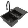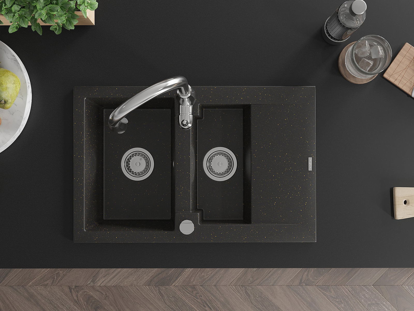 Mexen Gaspar granitový dřez 1,5-komorový s odkapávačem a kuchyňskou baterií Savita, černý/zlatý - 6507-75-672601-00