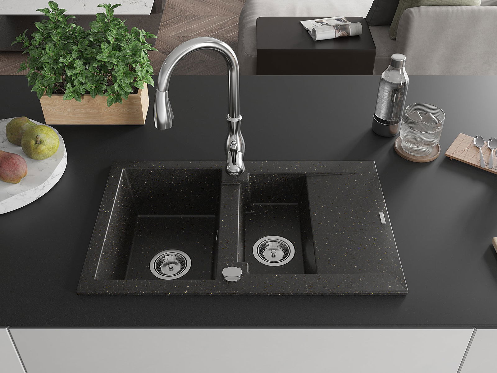 Dřez byl vyroben z vysoce kvalitního granitu. Představuje elegantní a především praktický doplněk každé kuchyně, bez ohledu na její styl. Vysoká kvalita a trvanlivost granitu zajišťují dlouholeté používání.