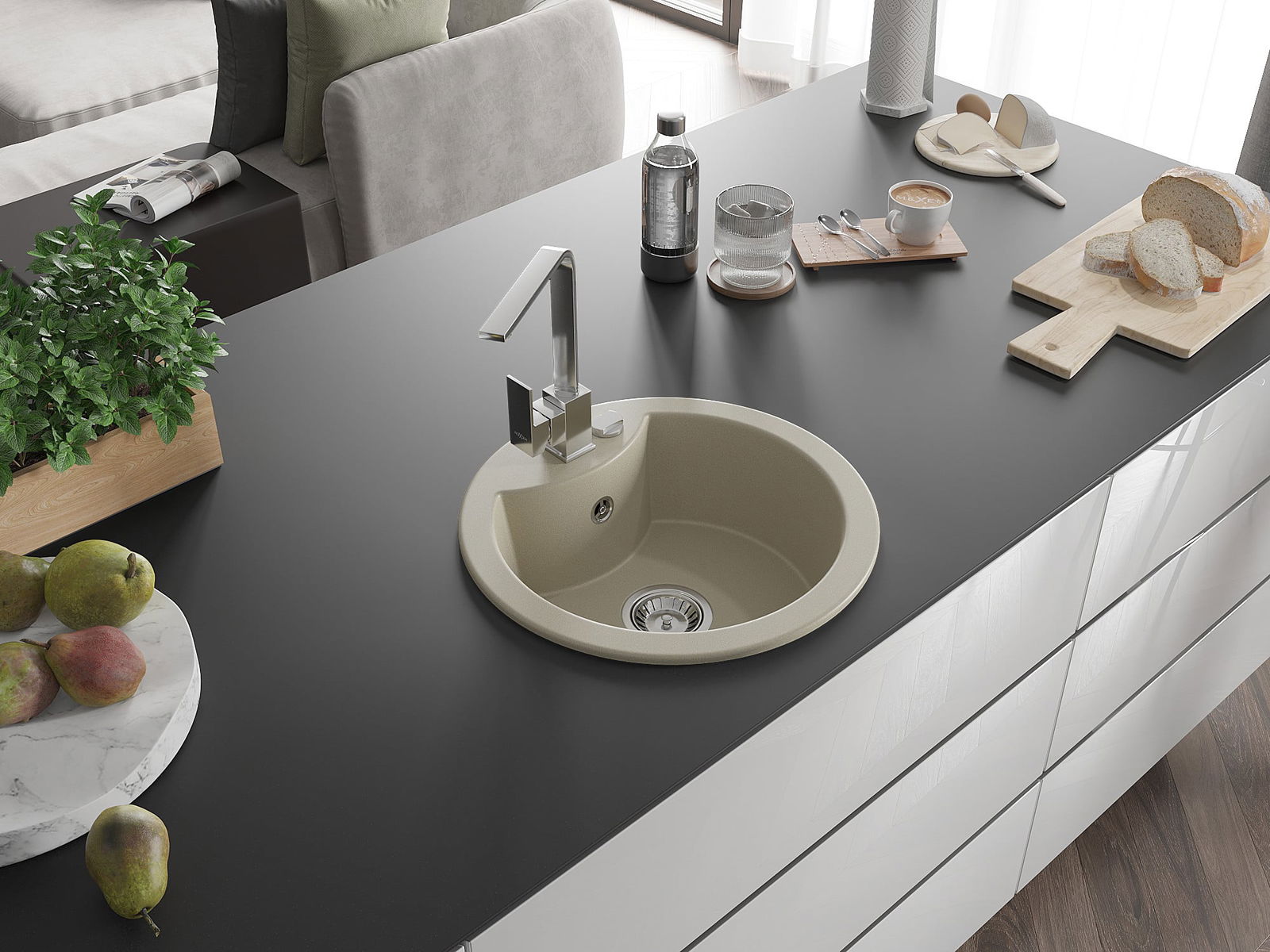 Dřez byl vyroben z vysoce kvalitního granitu. Představuje elegantní a především praktický doplněk každé kuchyně, bez ohledu na její styl. Vysoká kvalita a trvanlivost granitu zajišťují dlouholeté používání.