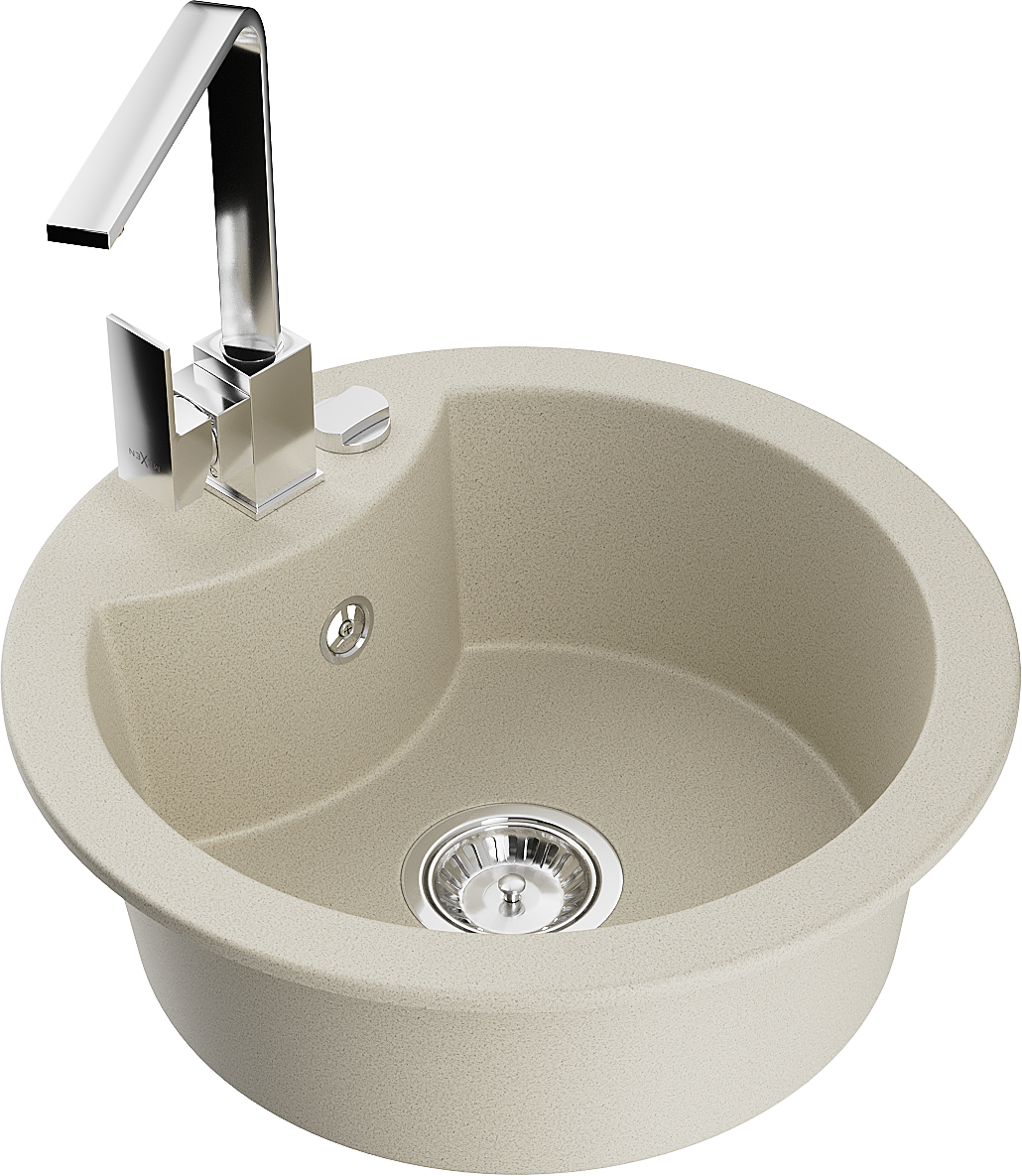 Mexen Diego granitový dřez 1-komorový s kuchyňskou baterií Rita, béžový - 6512-69-670300-00