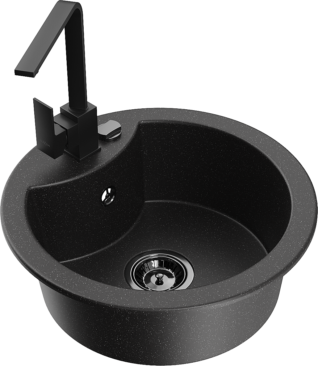 Mexen Diego granitový jednodřez s kuchyňskou baterií Rita, černý/stříbrný metalik - 6512-73-670300-70-B
