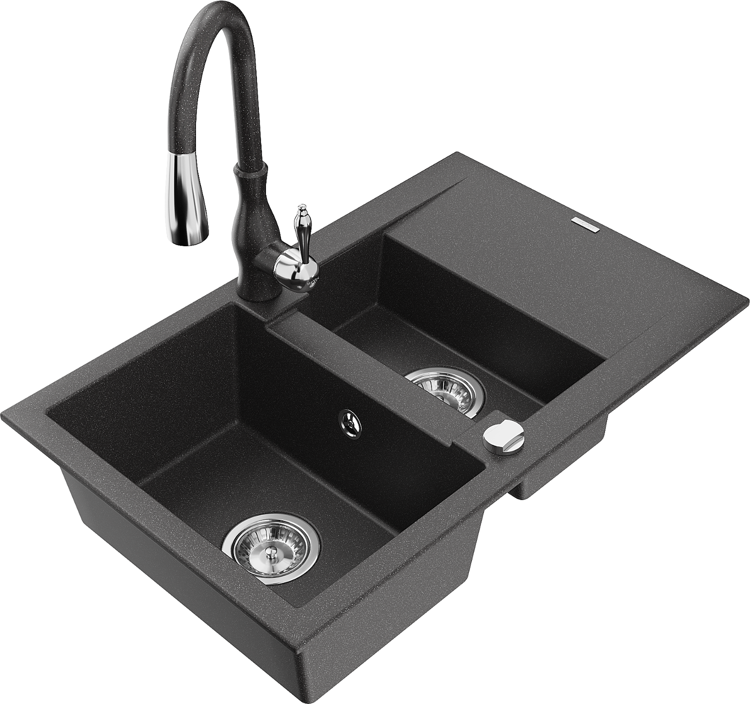 Mexen Gaspar granitový dřez 1,5-komorový s odkapávačem a kuchyňskou baterií Savita, černý s tečkami - 6507-76-672601-76